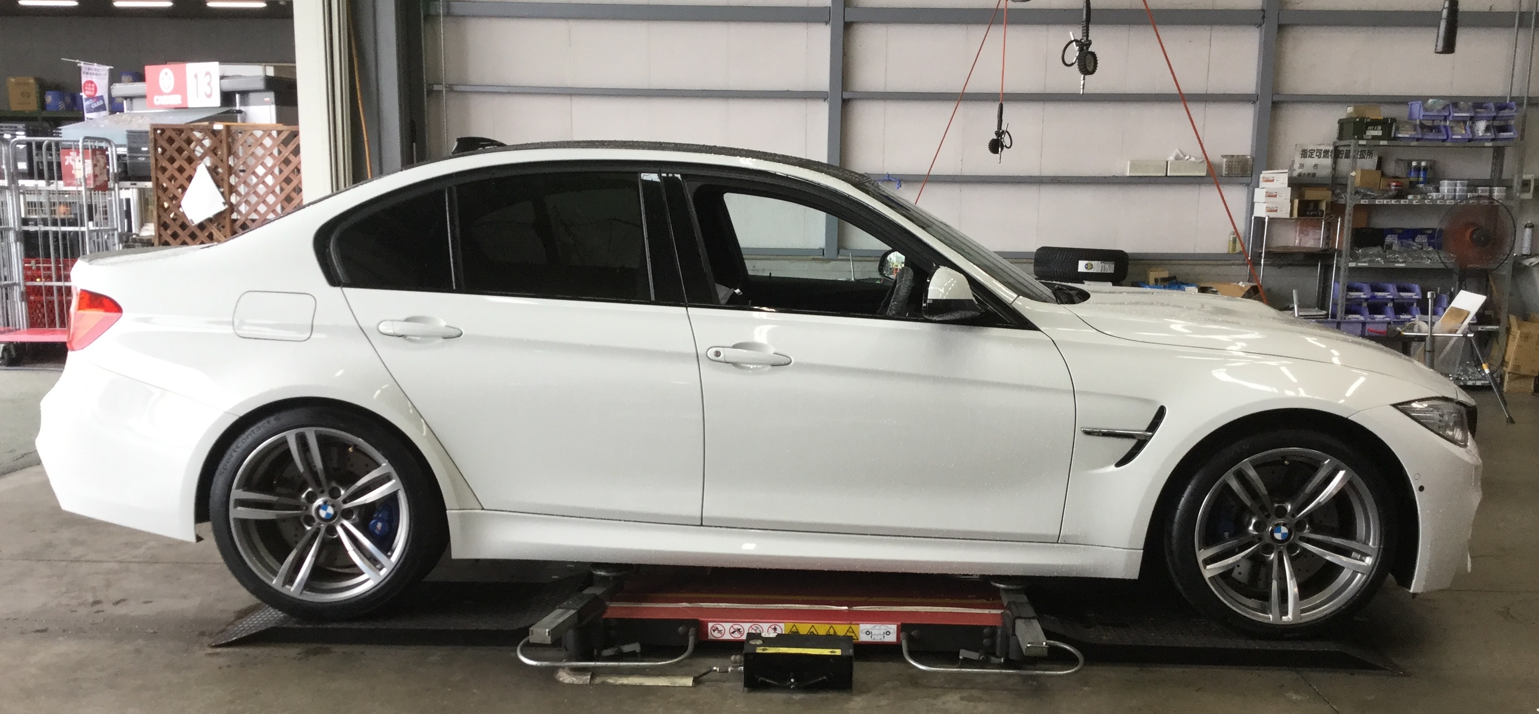 装着しました車両は BMW M3 ハイパフォーマンスセダン になります。