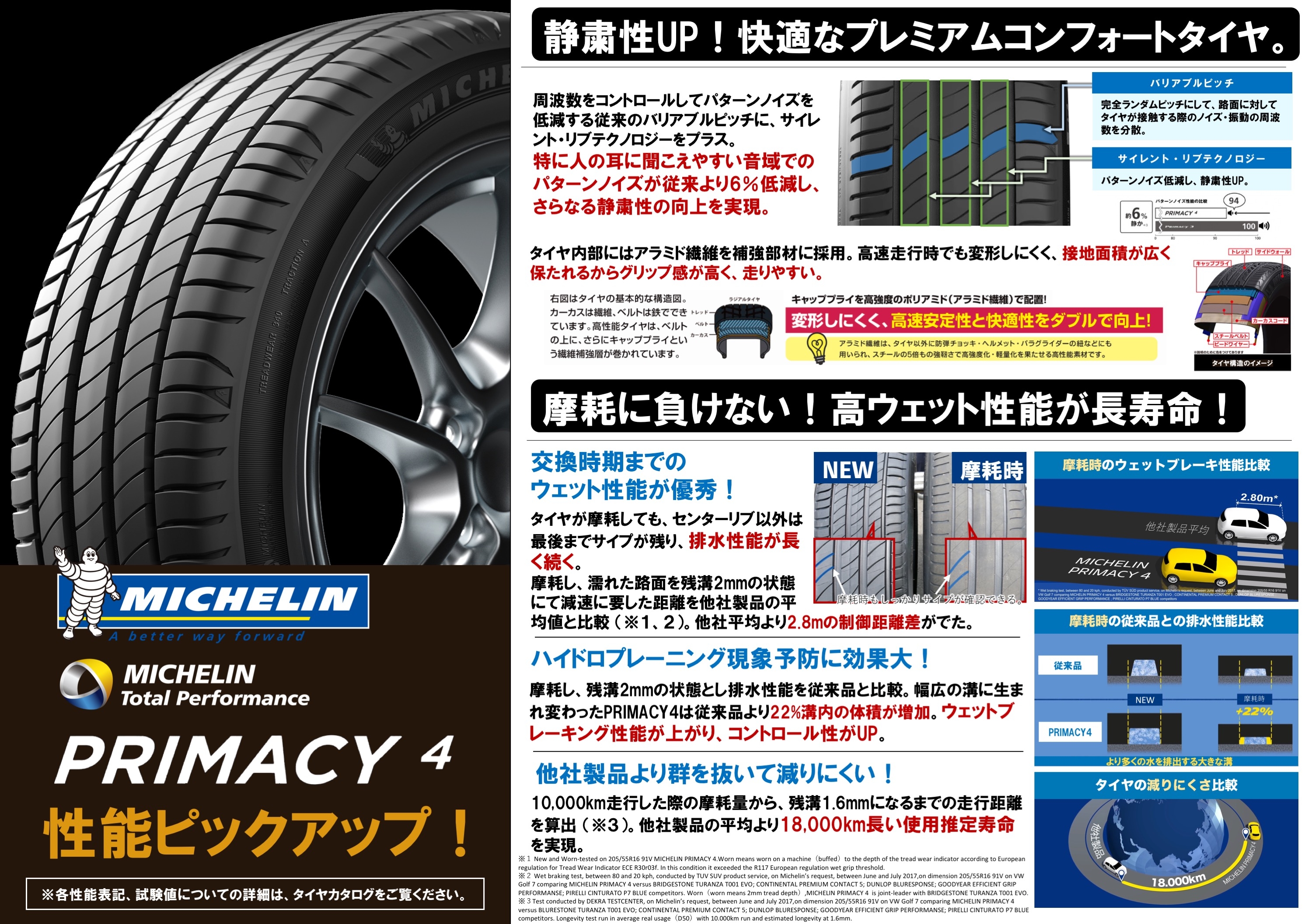 今回は ミシュランタイヤ プライマシー4 というプレミアム コンフォート タイヤでございます。