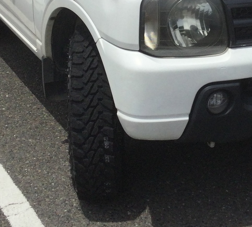 ジムニーにお乗りの方で、大径サイズに変更してマッドタイヤを履いている方は多いですが