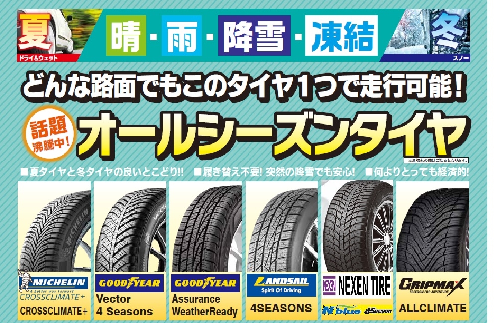 夏も冬も季節を選ばずに使える オールシーズンタイヤ のご紹介です。