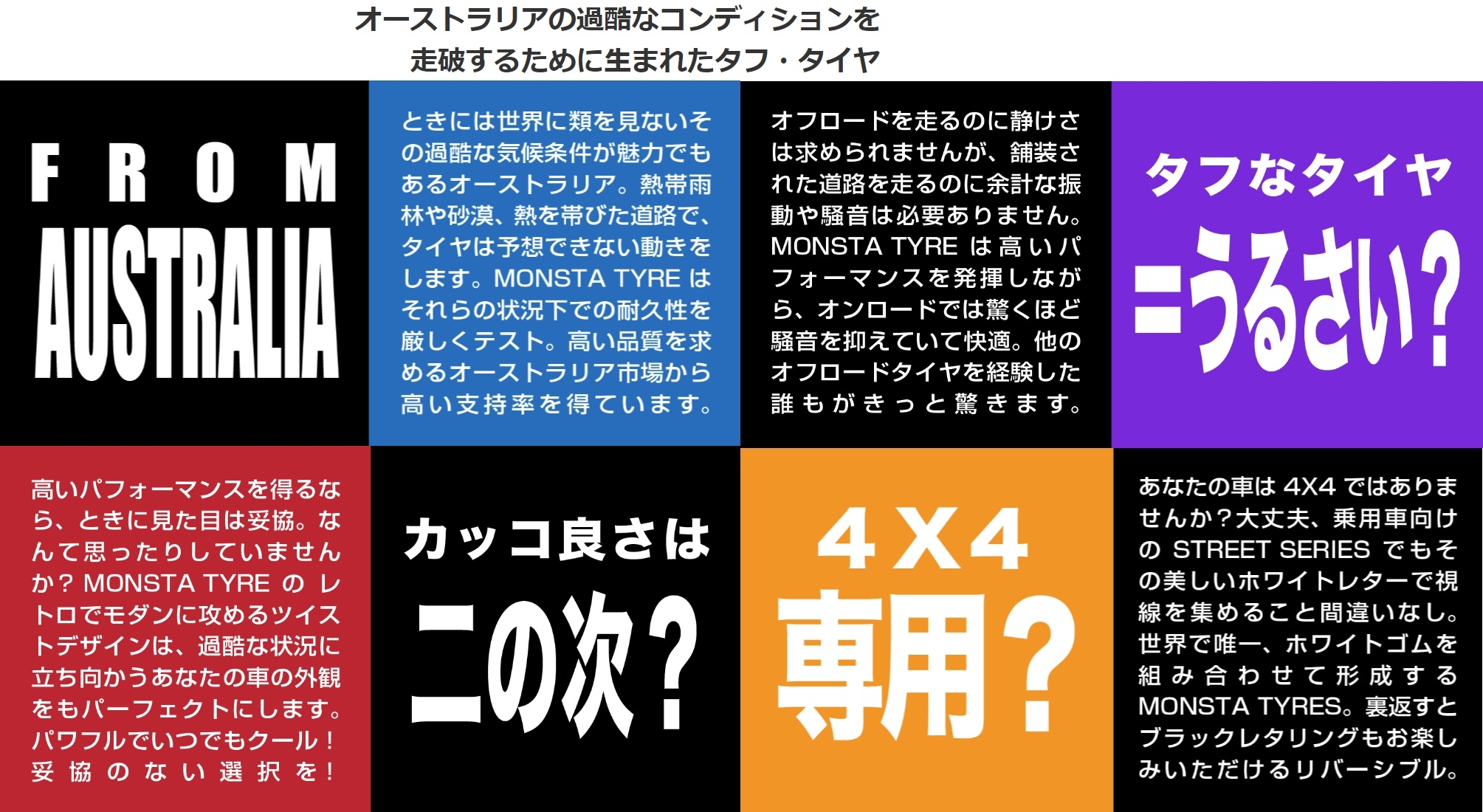魅力あふれる MONSTA TIRE をあなたの車にもどうぞ!詳しくは⇒メーカーHP