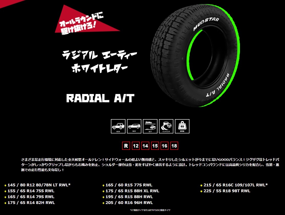 マッドスターあります。MUDSTAR RADIAL MT・AT 取り寄せできます。