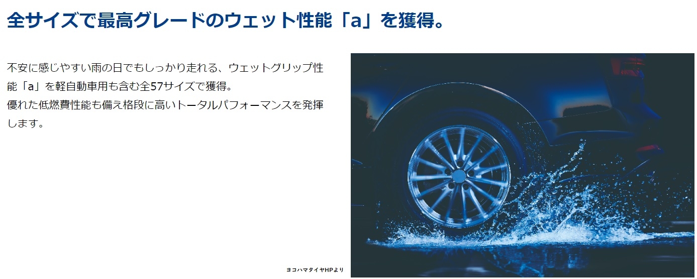 この ヨコハマ ブルーアースGT は全サイズウェット性能最高ランク a を獲得した雨に強いタイヤです。![]()