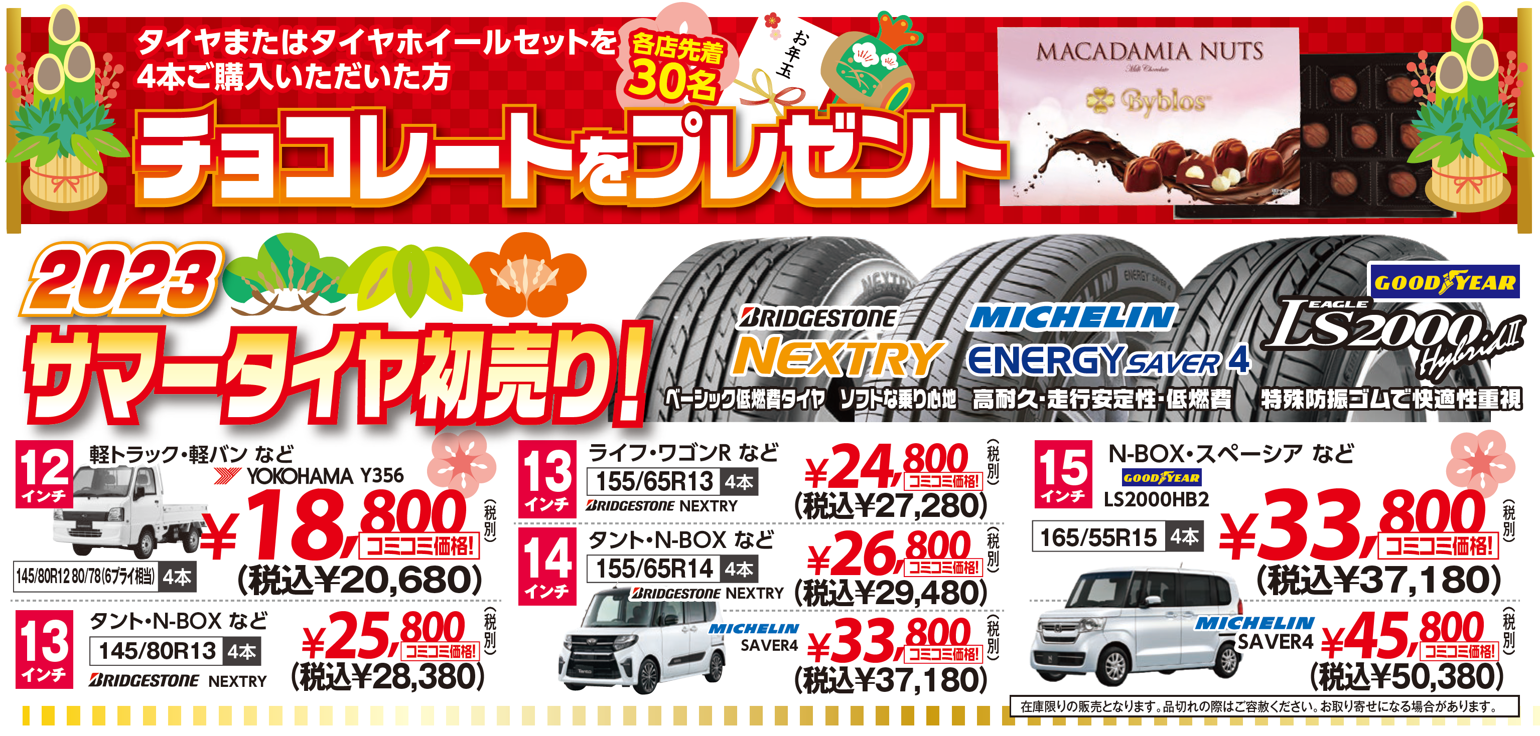 タイヤ、ホイールをご購入頂いた先着30名様には、チョコレートをプレゼントさせて頂いておりますので、