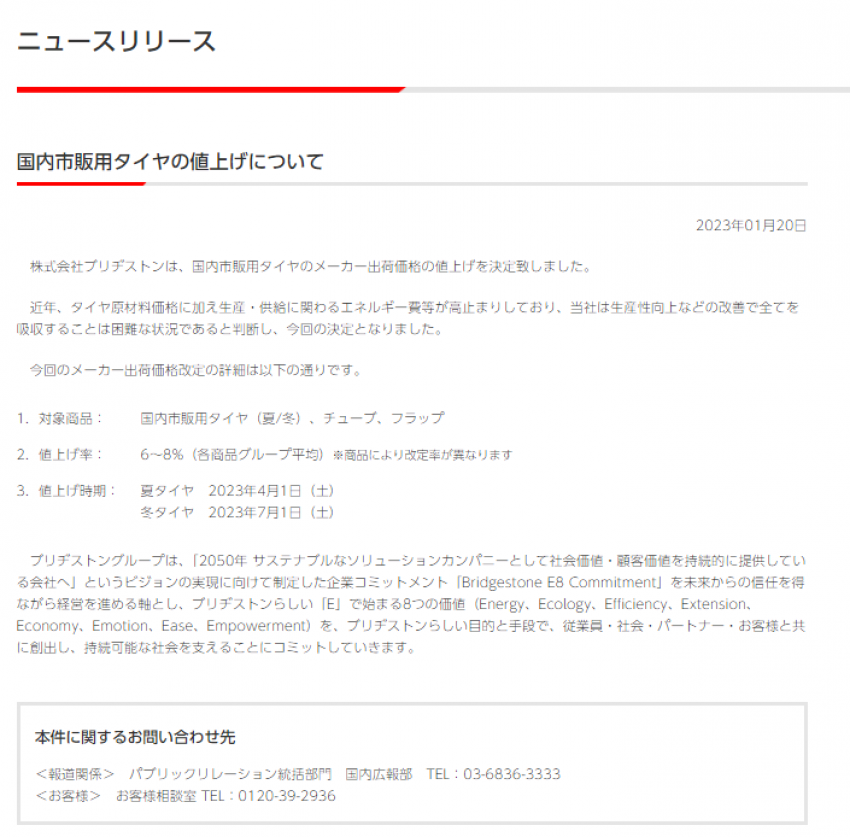 ブリヂストンHP ニュースリリース https://www.bridgestone.co.jp/corporate/news/2023012001.html