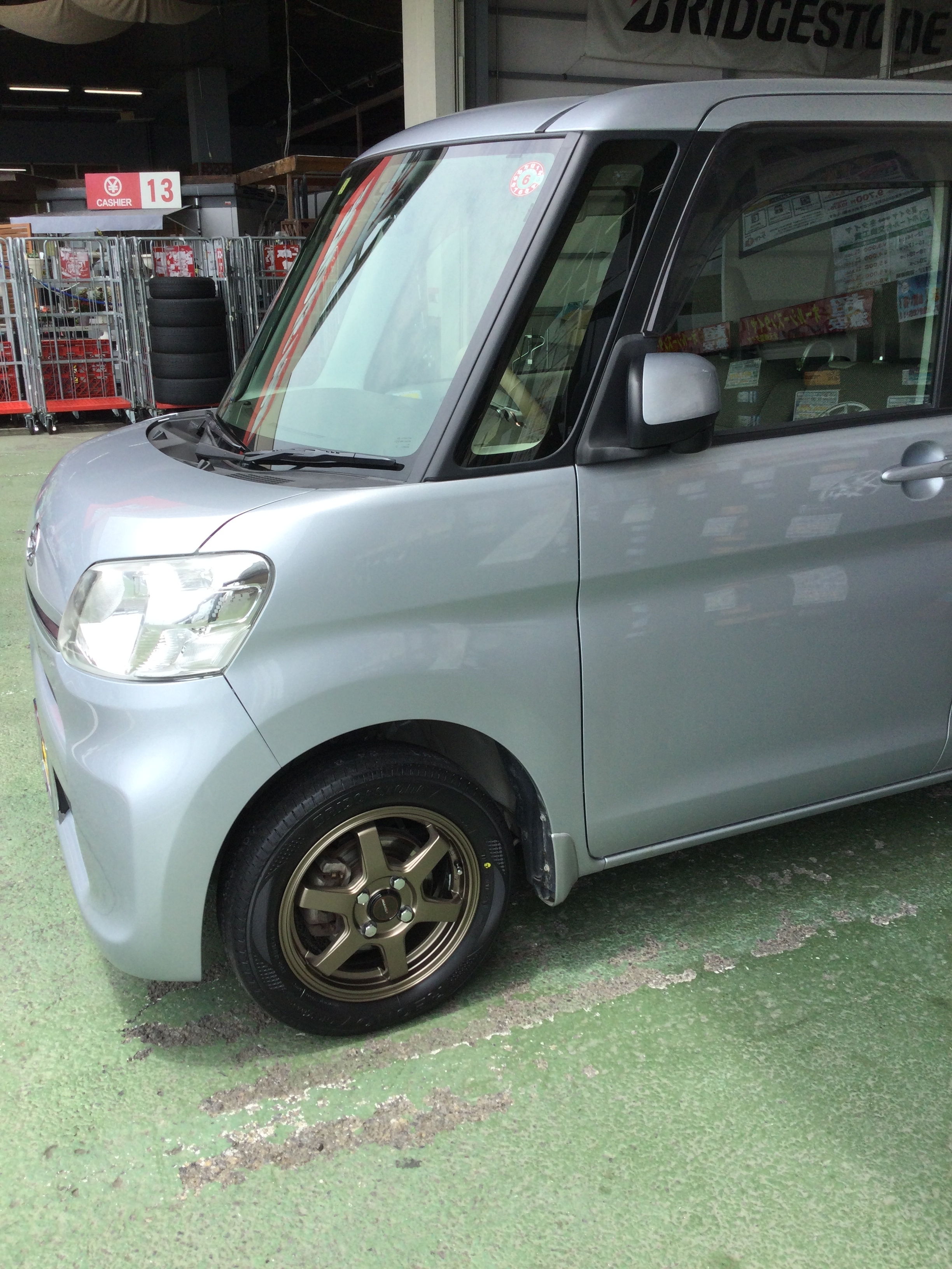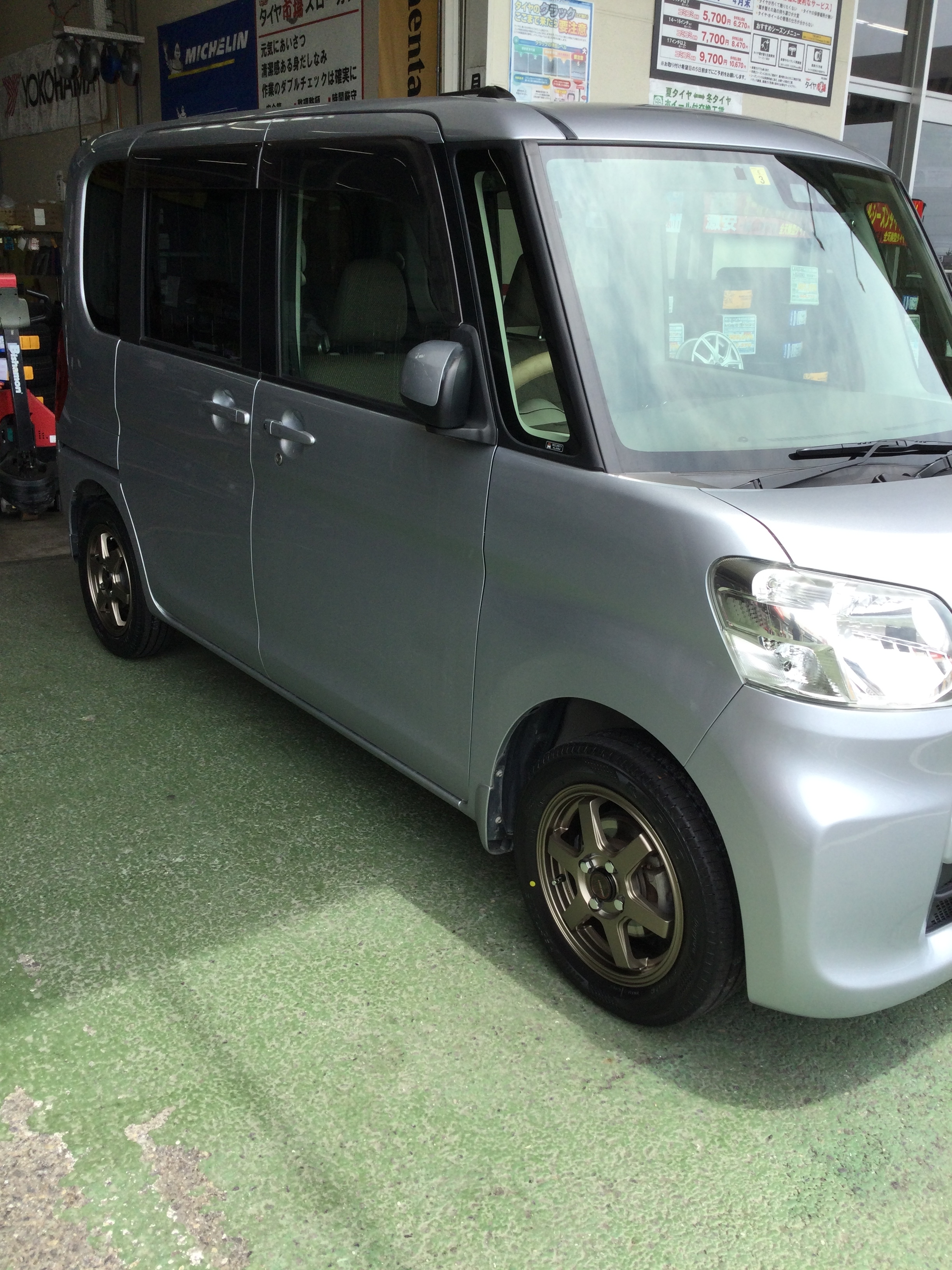 本日は、ダイハツ タント にて、サマータイヤ+アルミホイールのセットをお取付けさせていただきましたので、ご紹介いたします!!