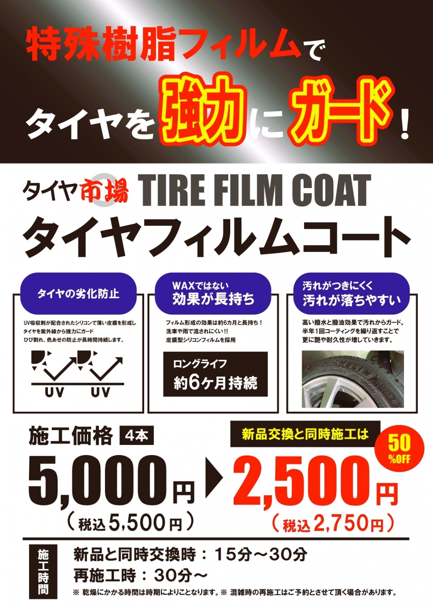 そこでフィルムコートをオススメ!!タイヤの側面をコーティング致します!!