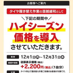 AM9:00~PM8:00(ピット作業受付:AM9:00~PM7:00)1月/2月/5月/6月/7月/8月/9月