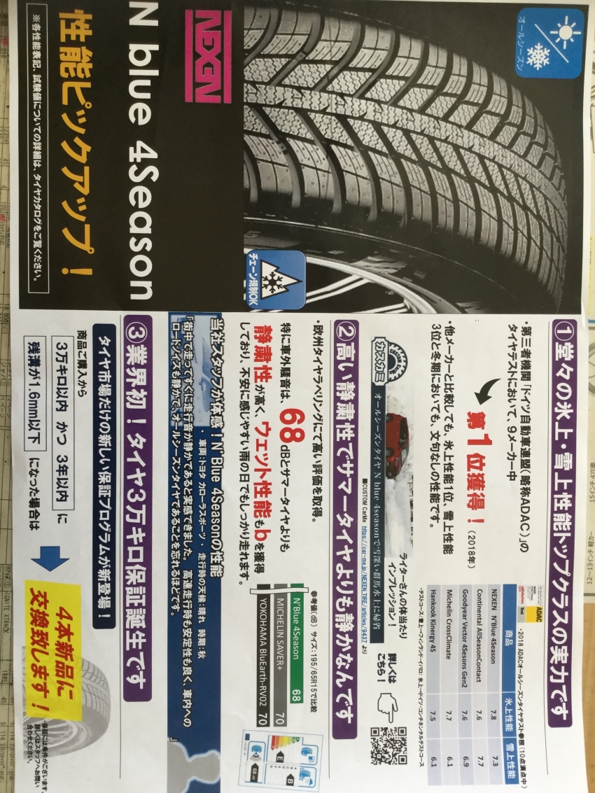 新しくお取り寄せした「オールシーズンタイヤについてです。