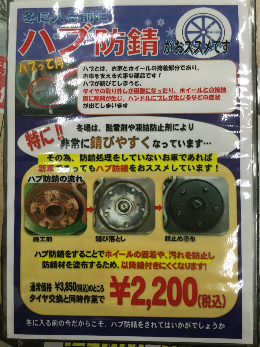 ハブの部分の錆を取り、防錆剤を塗布し、