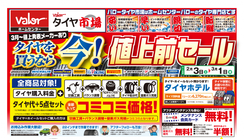 そこでバロータイヤ市場では、値上がり前のお値打ちセールを