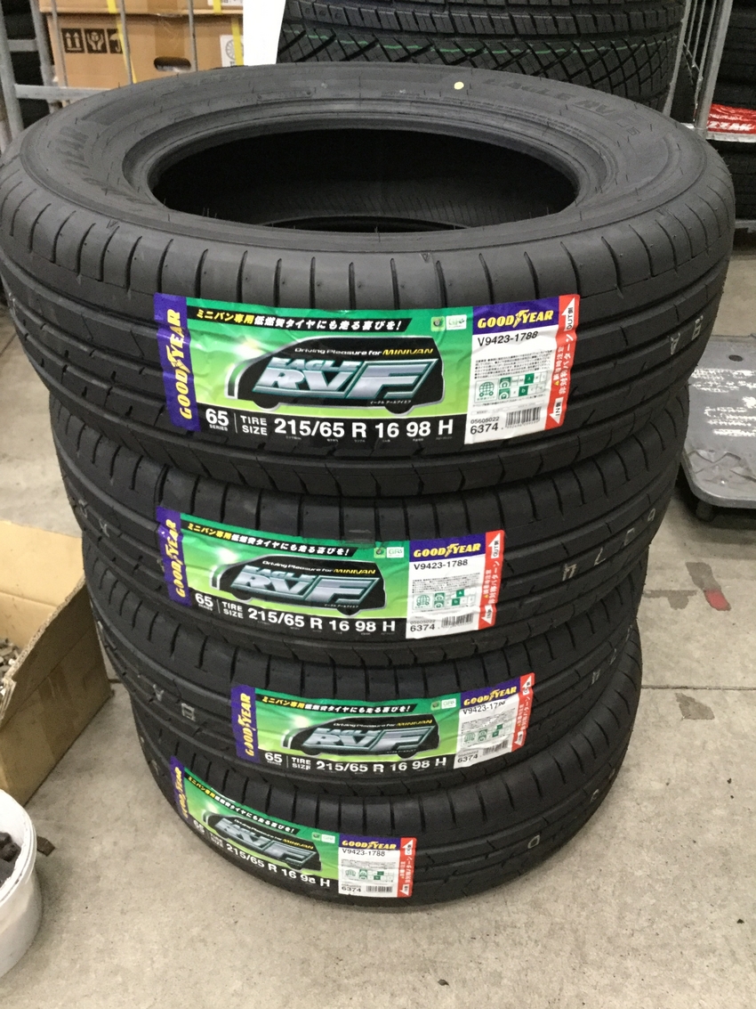 写真はサイズが違うタイヤになりますが、今回アルファードには、205/65R16のグッドイヤーのRV-Fをつけさせていただきました!