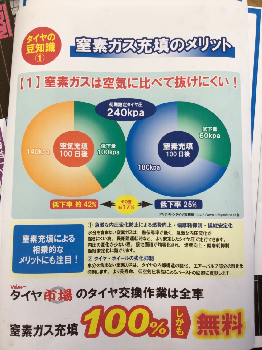 窒素ガスの補充を無料にてタイヤが使えなくなるまでいつでも何回でも