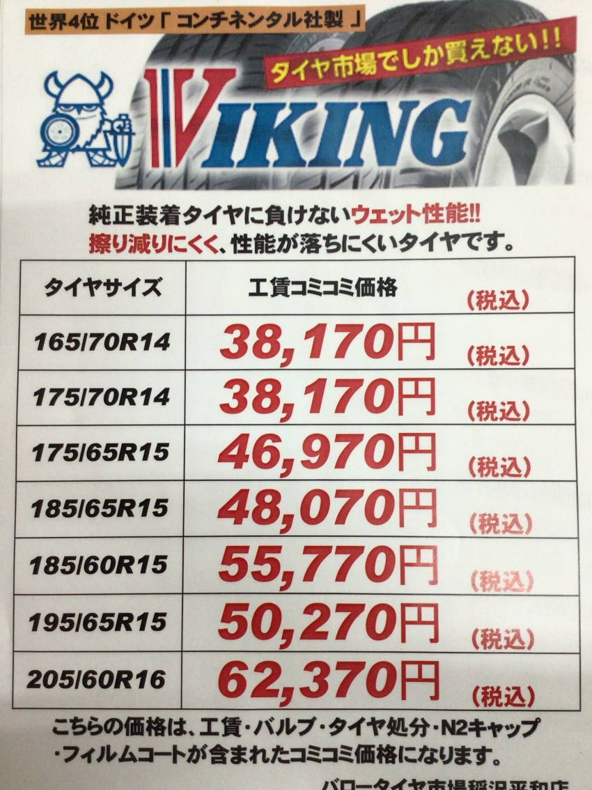 バイキングは、ドイツ コンチネンタルタイヤのセカンドブランド