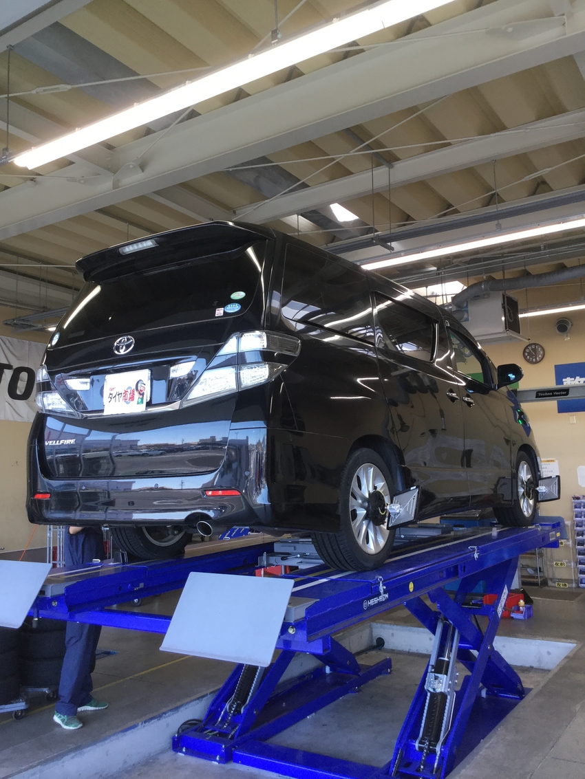トヨタ・ヴェルファイアのタイヤ交換と、アライメント調整をさせていただきました!