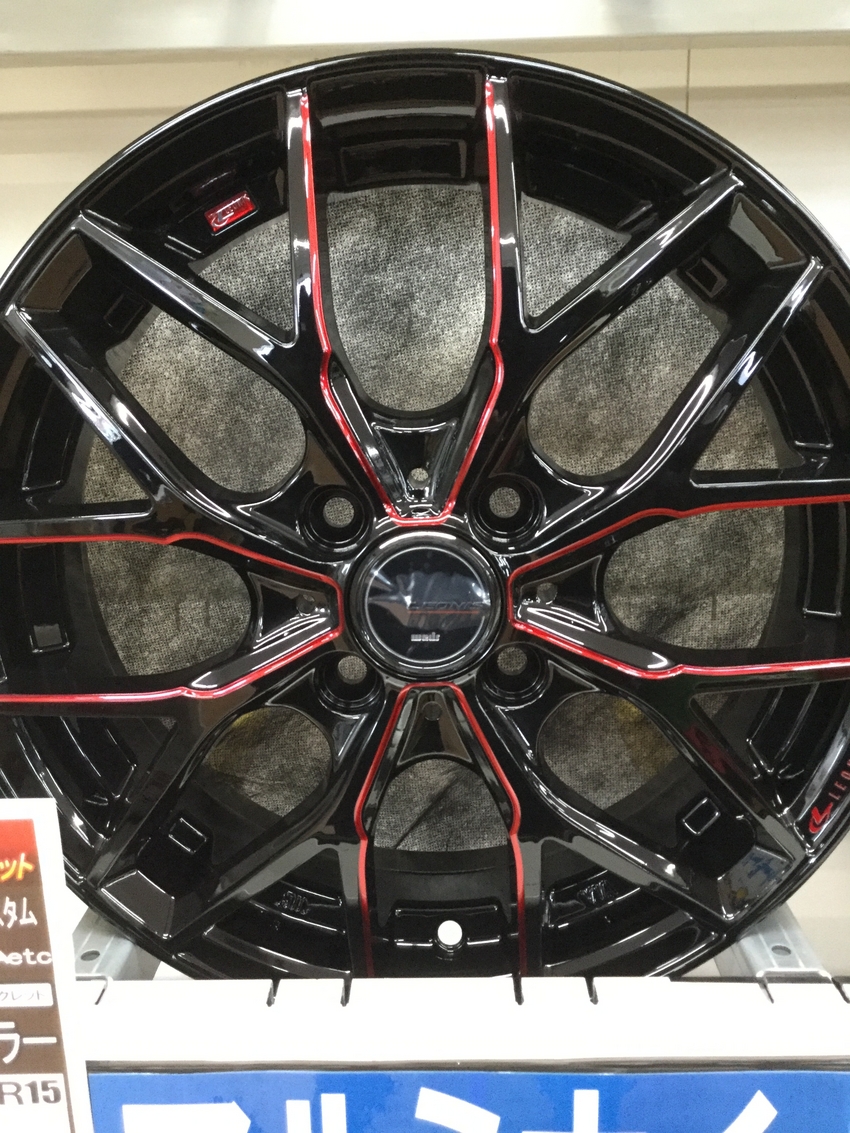 リムエンブレムやレーザー刻印など、レッド&ブラックの