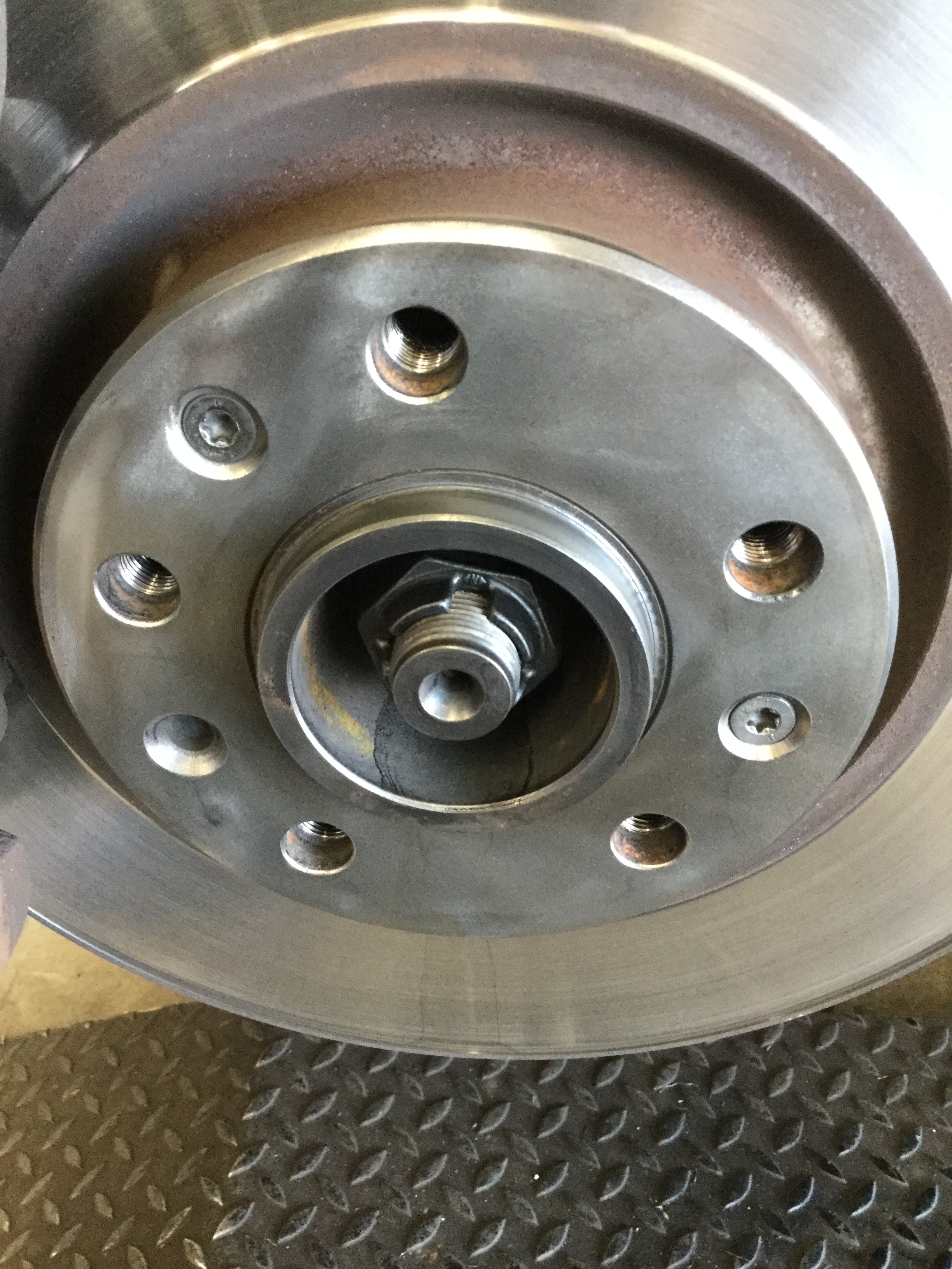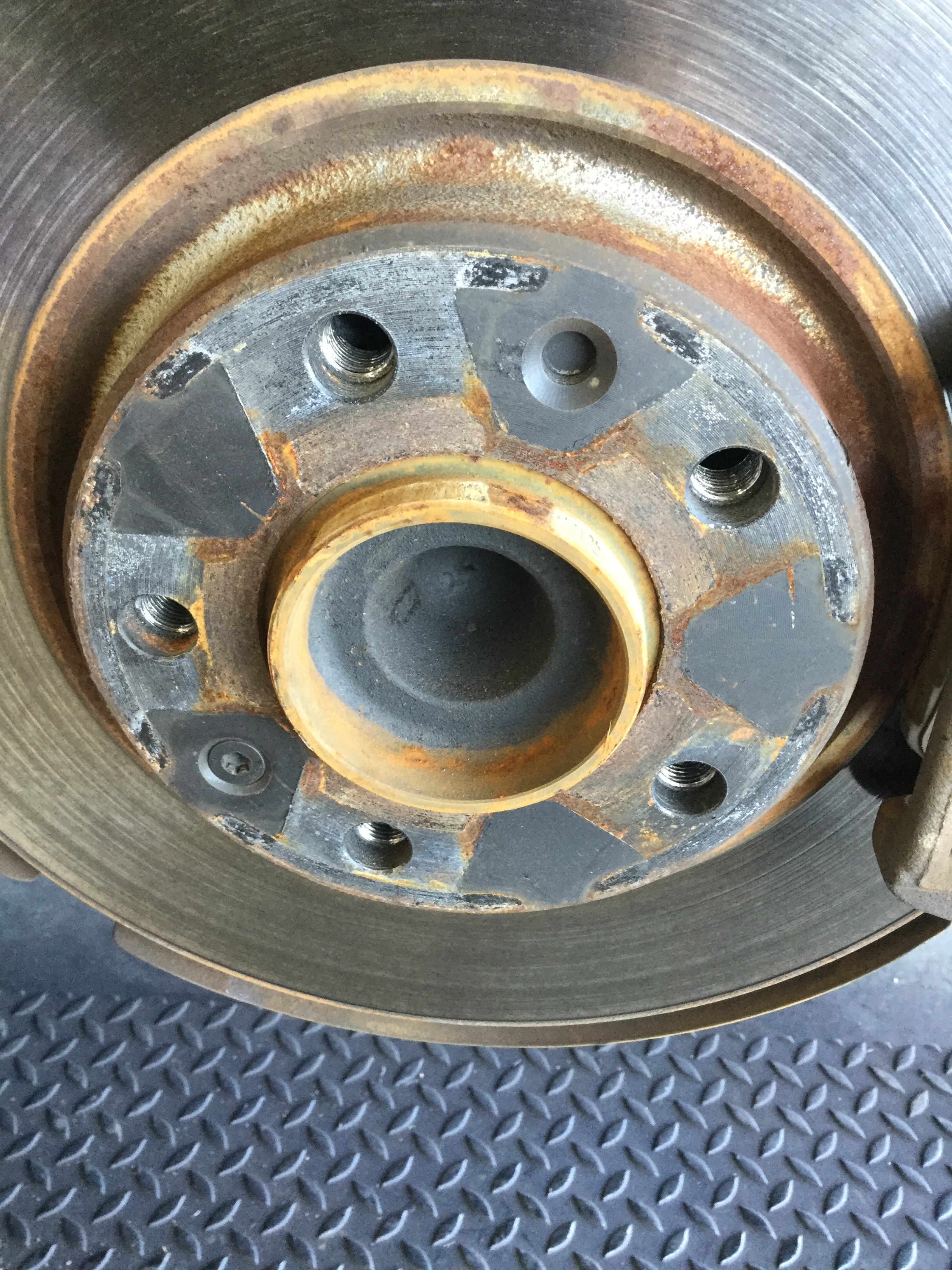 ホイールと車体が接地する箇所であるハブの施工前の状態です。