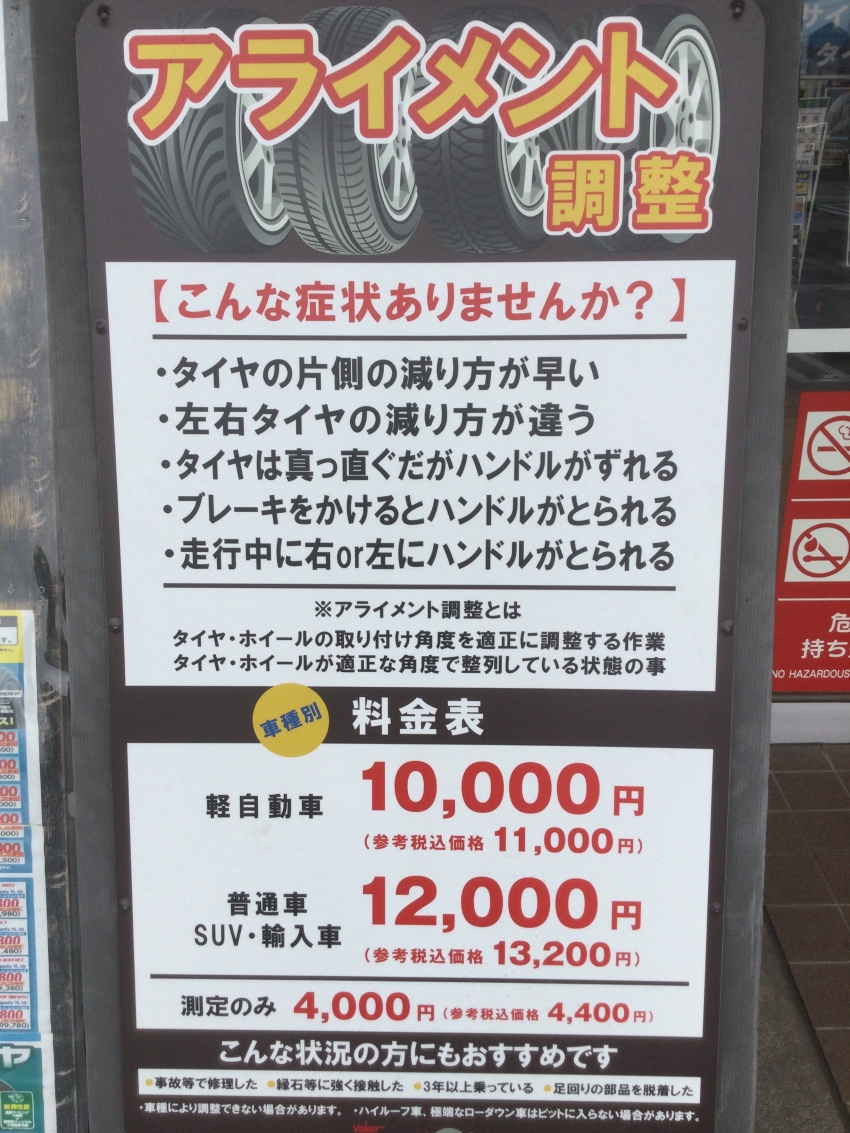 車を5年以上、走行距離にして5万キロ以上使われているお客様、縁石に強く乗り上げてしまった、タイヤの偏摩耗が激しいと思われているお客様には特におすすめの作業になります!