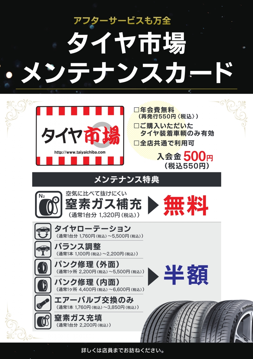 なので、当店でタイヤ4本購入して頂ければ、加入料金無しで会員になる事が出来ます。