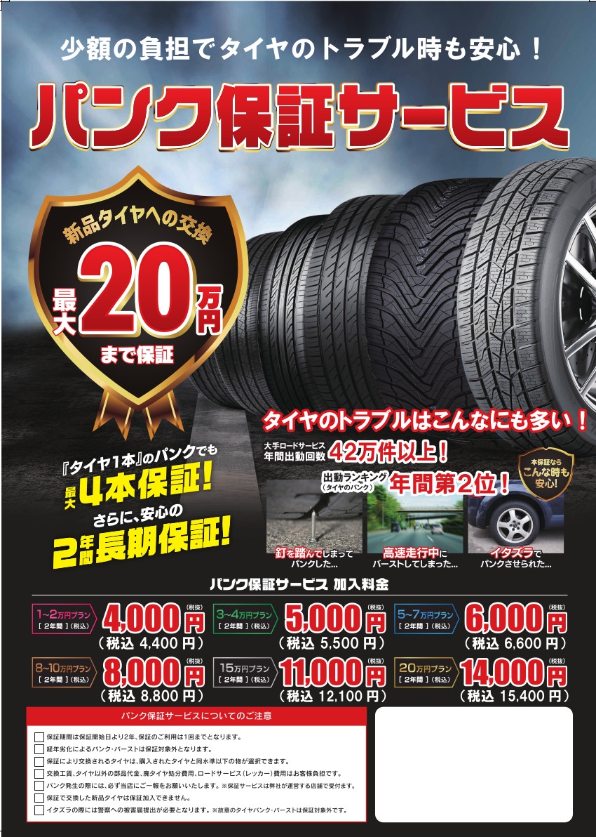 今回はパンク保証のお話になります^_−☆