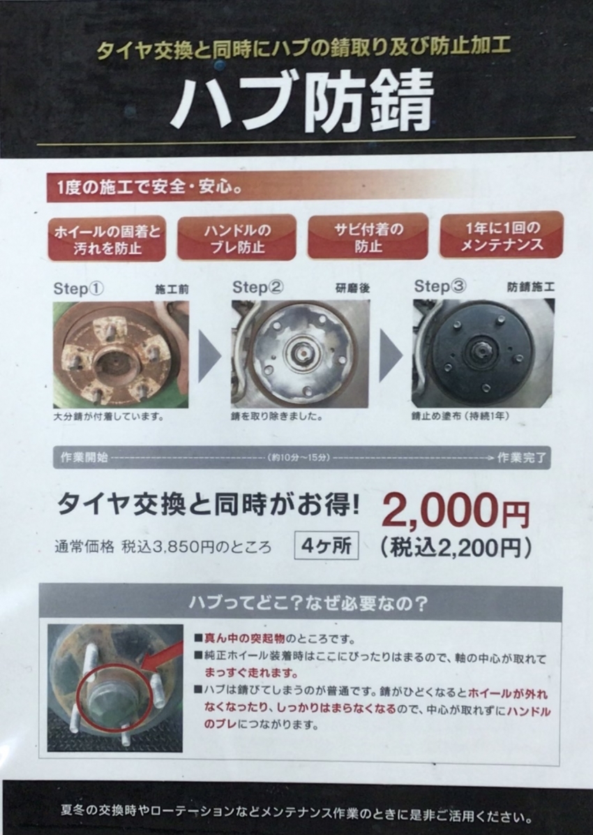 タイヤ付け替え、組み替えと同時にハブ防錆はいかがですか?