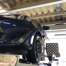 今まで装着されていたタイヤが内減りしていたので、アライメント調整をおすすめし、作業させていただきました。