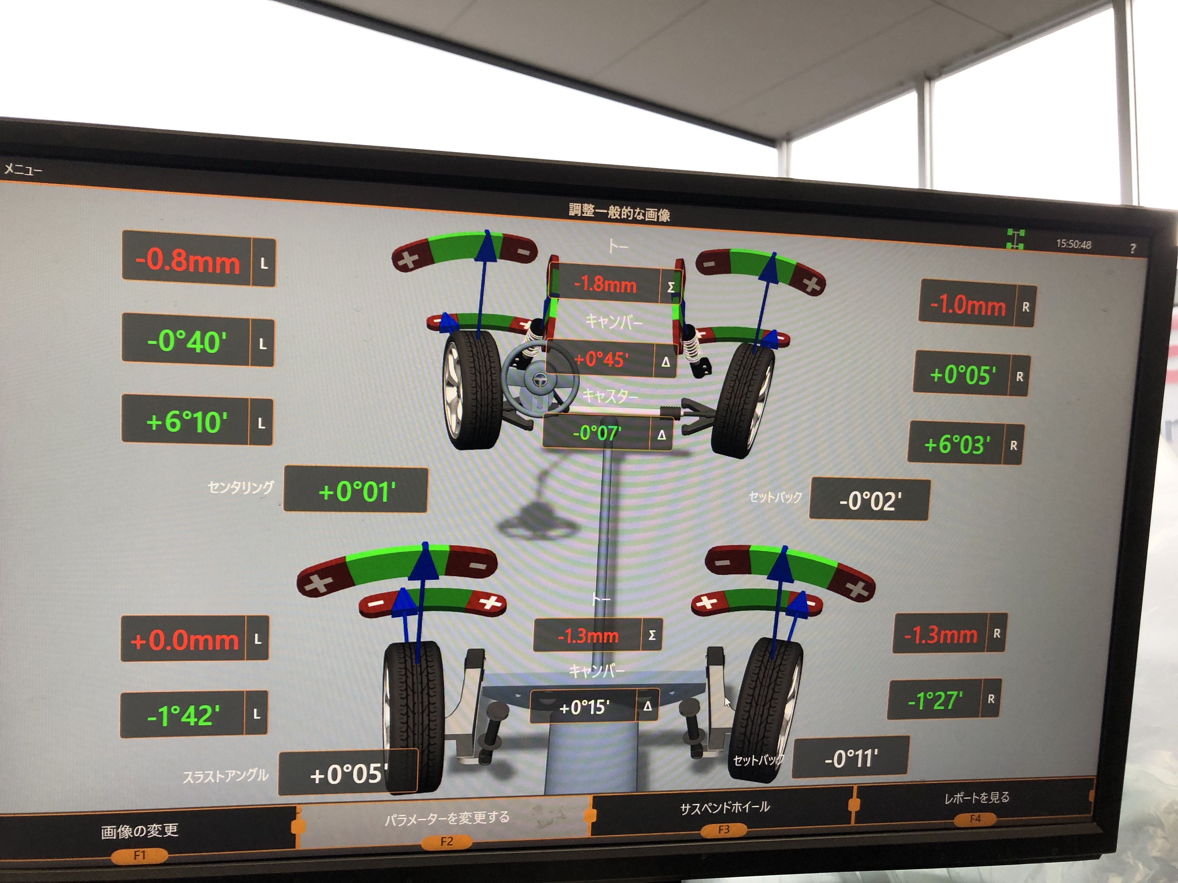 そして同時にアライメント調整をさせていただきました。内減りがあったのでおすすめしまして、数値としては