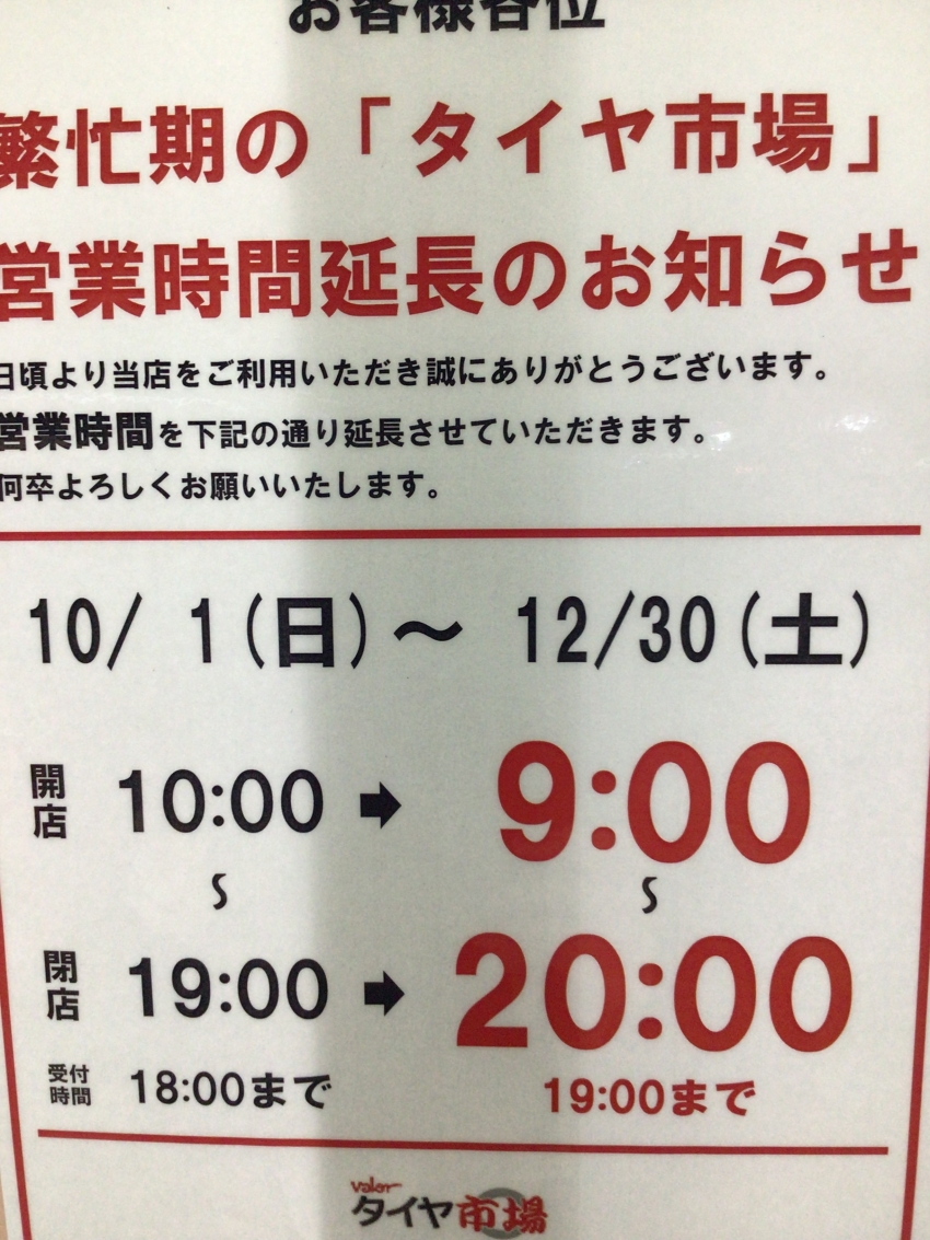 10/1より営業時間が変わるバロータイヤ市場各務原中央店です。