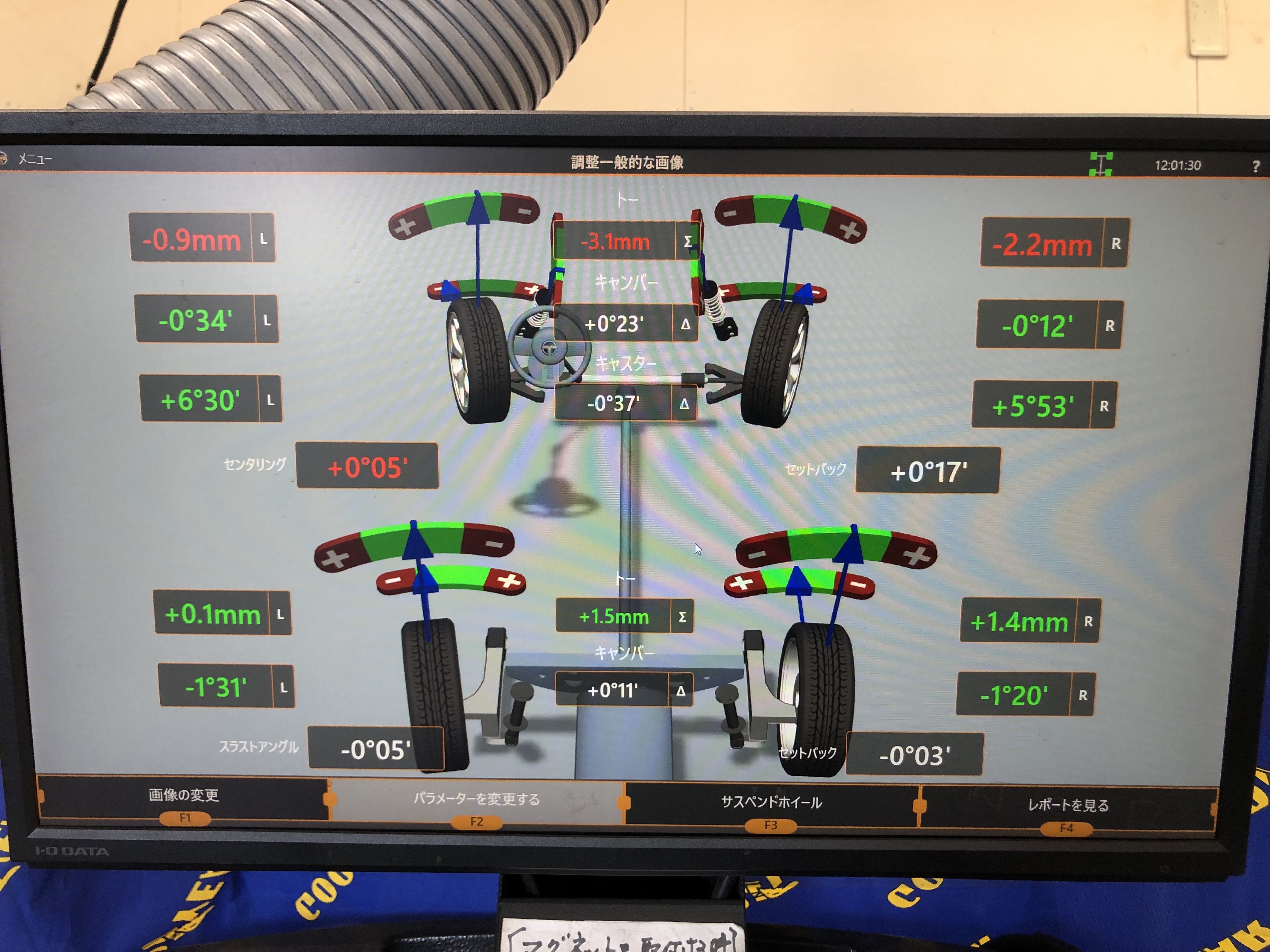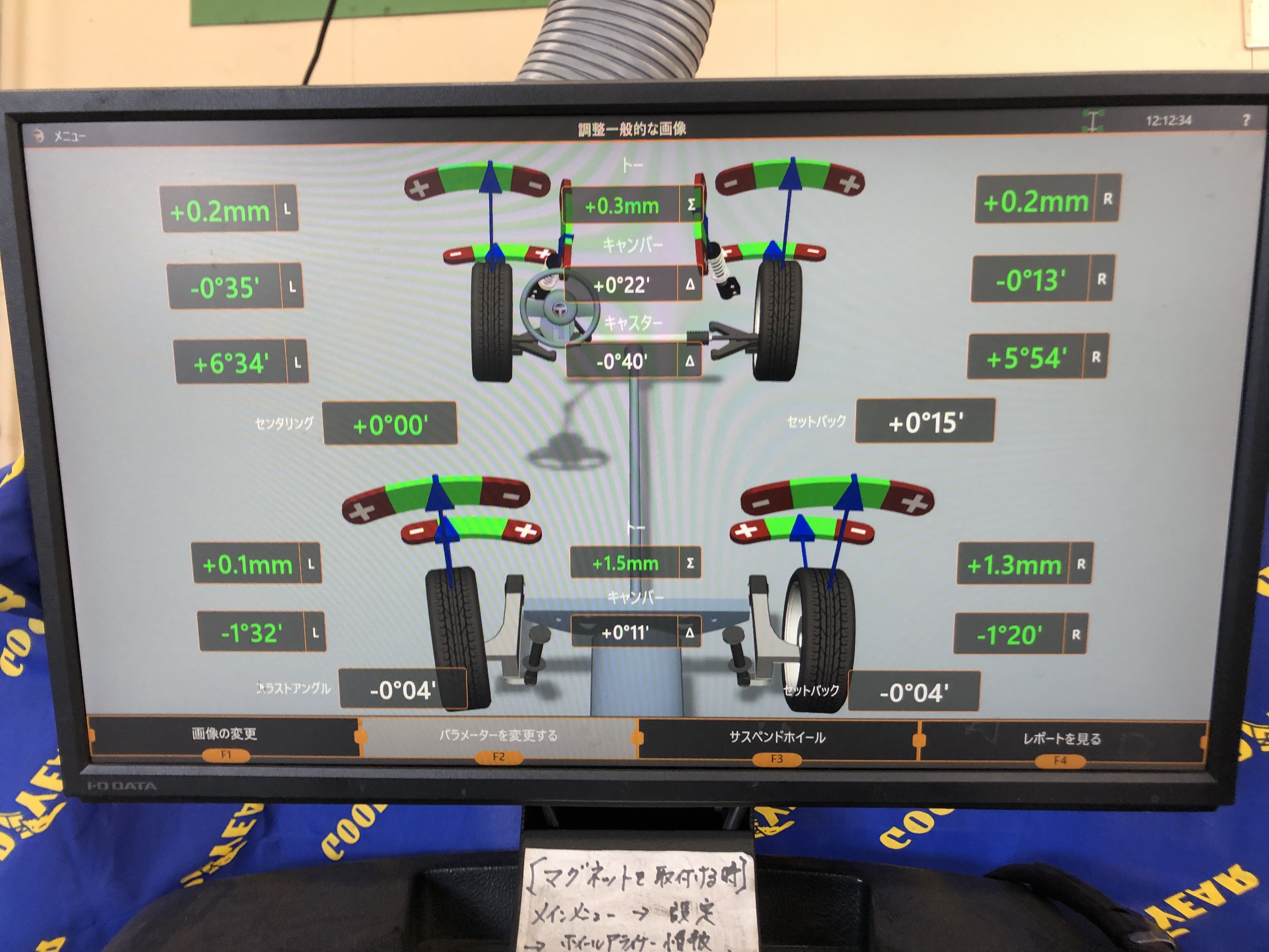 調整完了です!お時間は少しかかりますが、新品のタイヤ交換と同時にアライメント調整だって当店は可能です!偏摩耗がしにくくなって長くタイヤを使用していただけると思います。