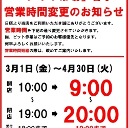 AM9:00~PM8:00(ピット作業受付:AM9:00~PM7:00)1月/2月/5月/6月/7月/8月/9月