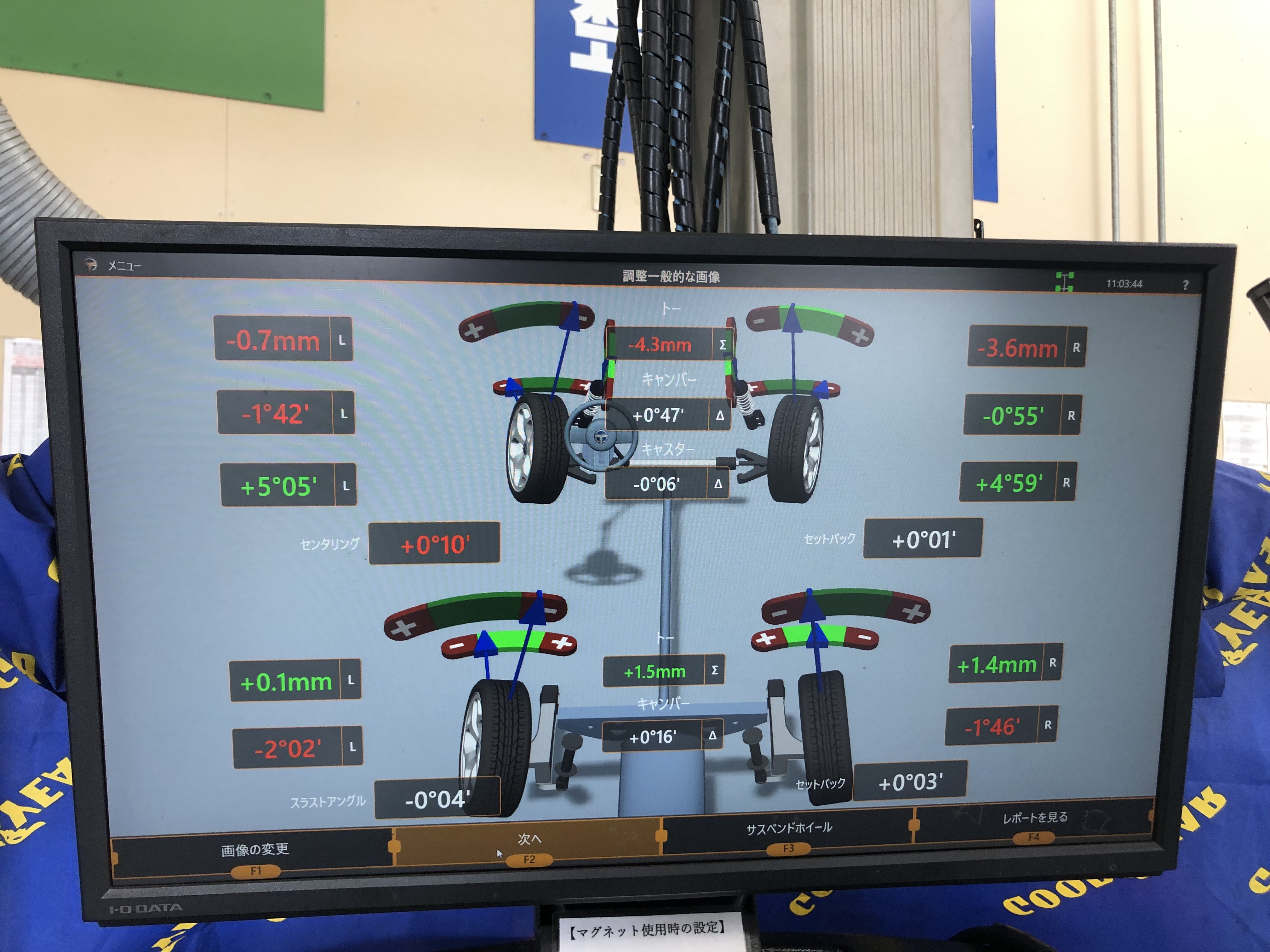 V37 3.JPGしっかり調整させていただきました。元々がトーイン設定なので、調整前に比べて直進性が向上したと思います。