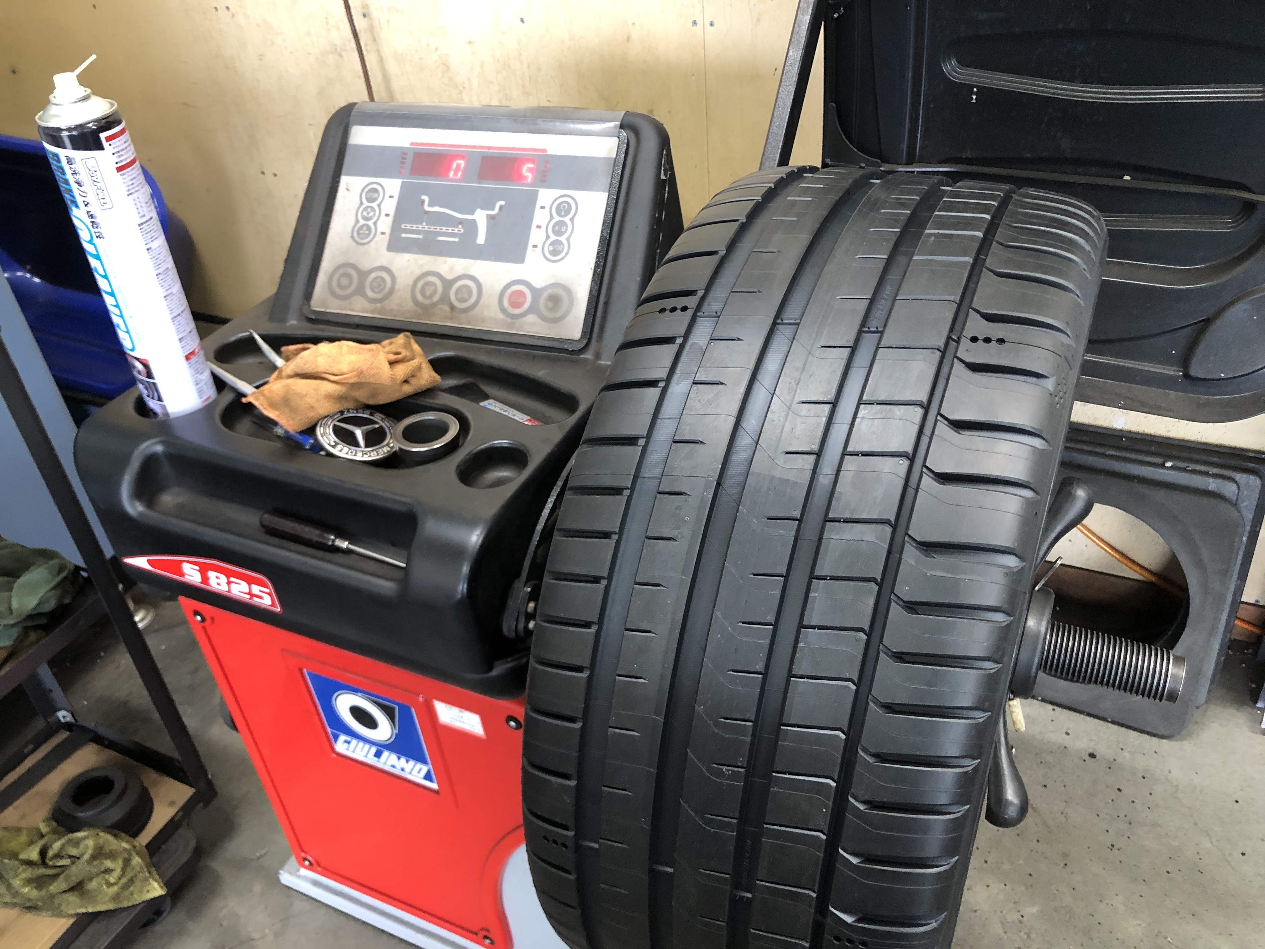 以前、メルセデスベンツCLSのお客様にタイヤをご購入いただきました。フロントサイズが245/40R19、リアサイズが275/35R19ととんでもないサイズですが、こういった大口径も喜んで作業させていただきます!お取り付けしたのはこちらミシュラン パイロットスポーツ5