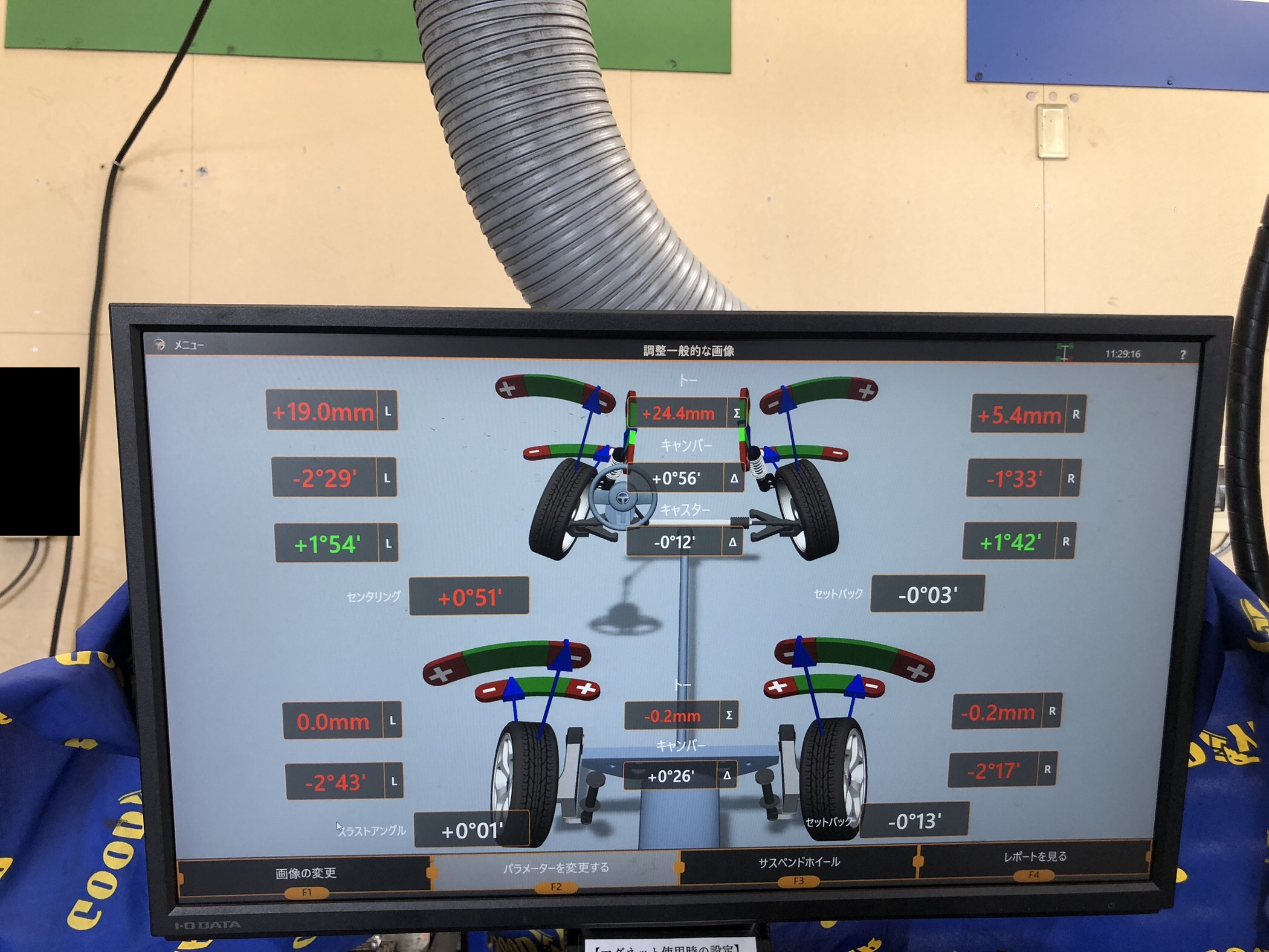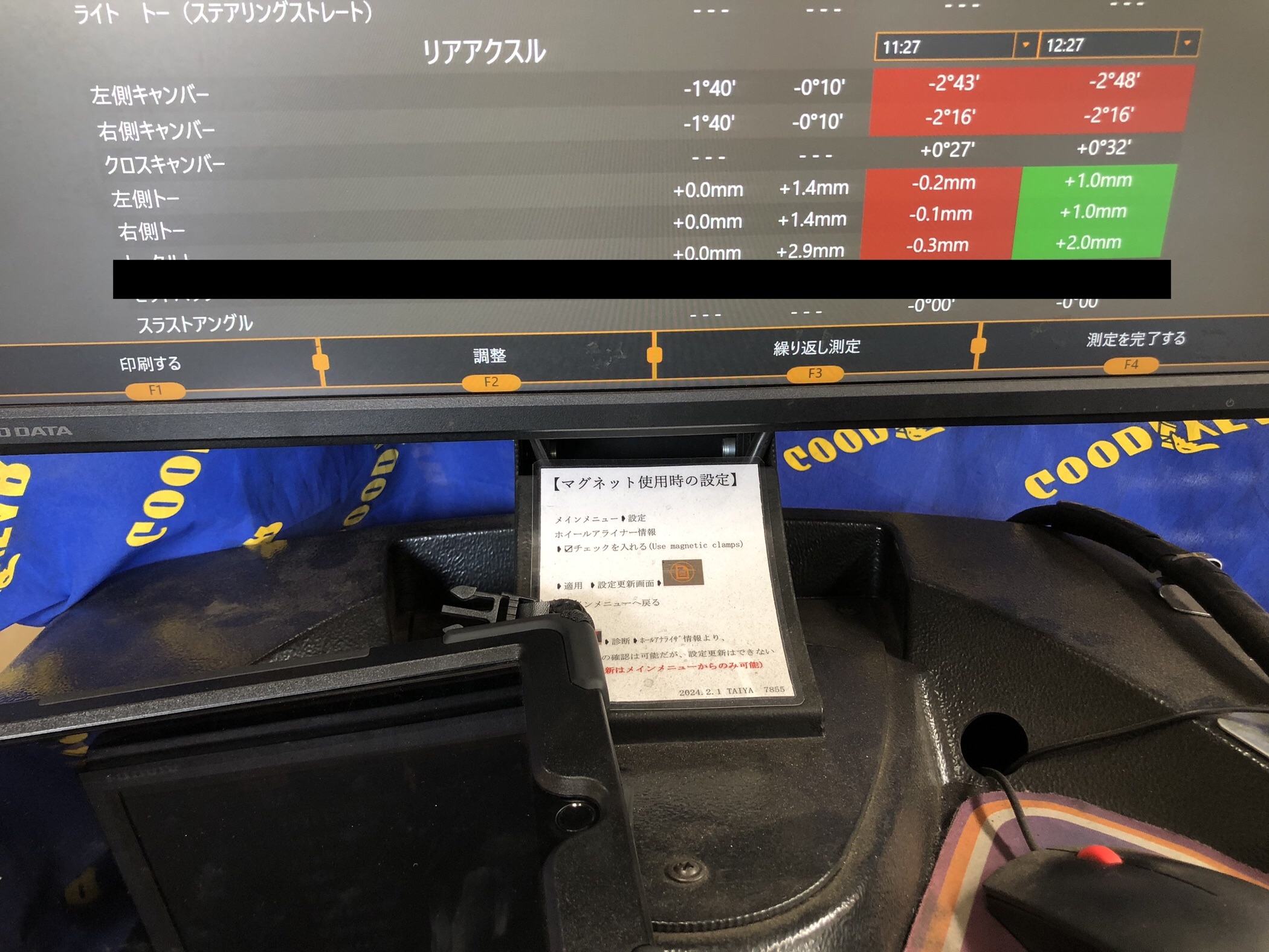 こういったアライメント調整が測定調整コミで普通車¥13,200(税込)、軽自動車¥11,000(税込)でバロータイヤ市場は対応させていただきます。
