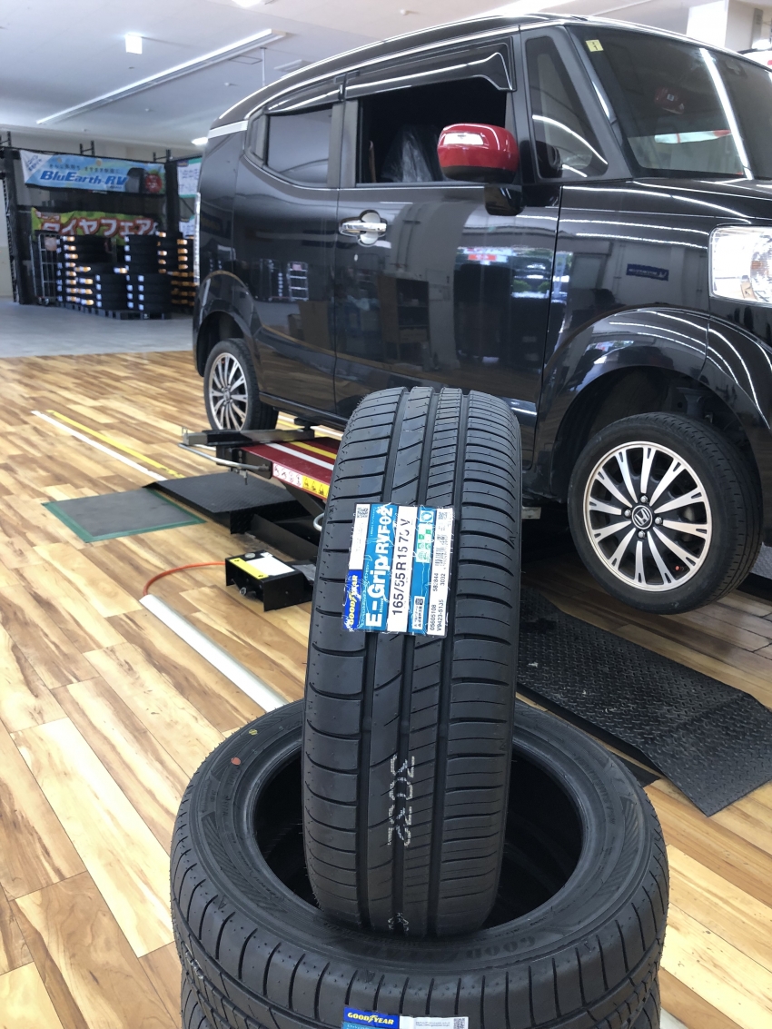 今回はホンダN-BOXスラッシュにGOODYEARの夏タイヤEfficientGrip RVF02お取り付けさせて頂きました(*´ω`)
