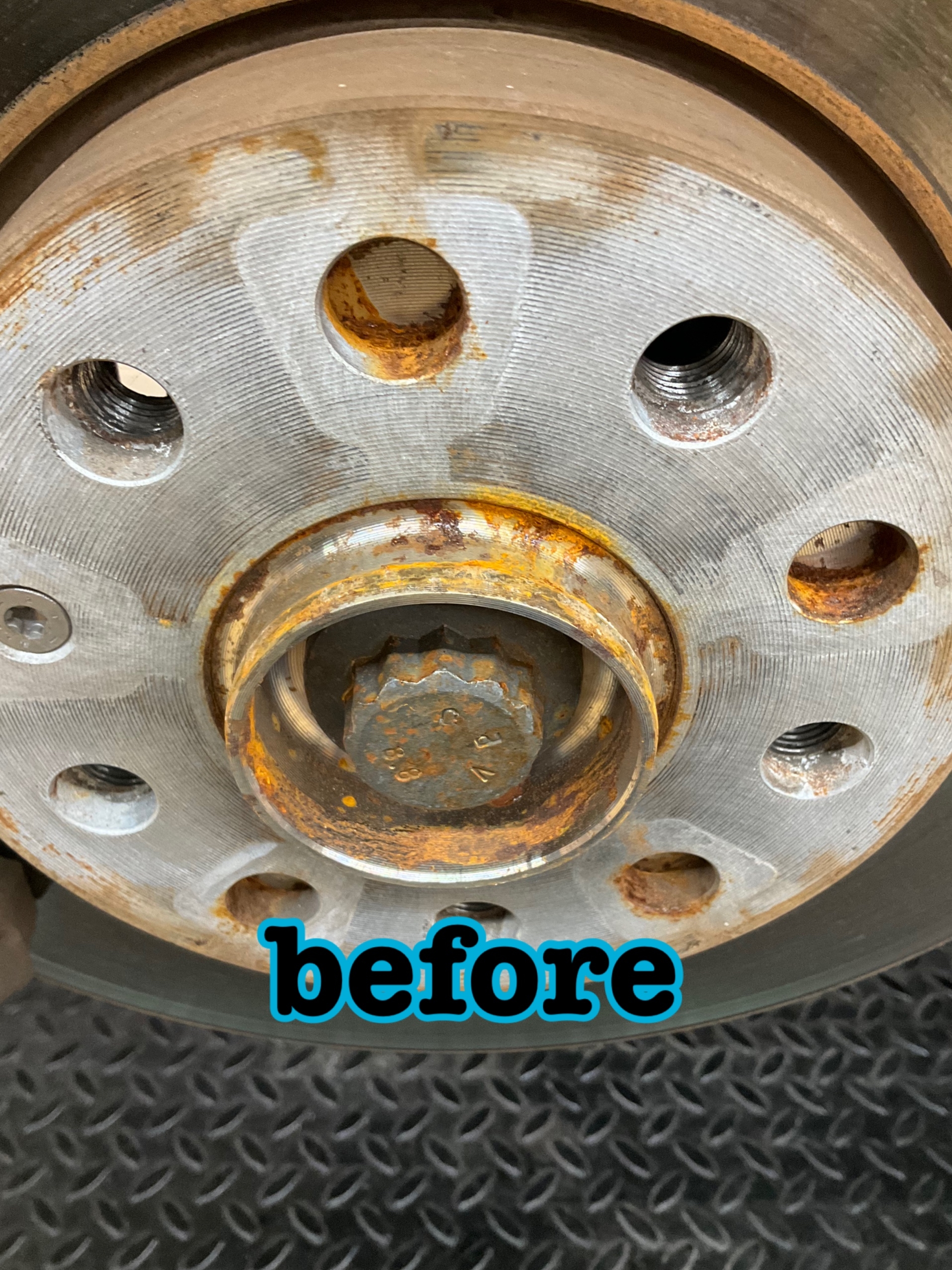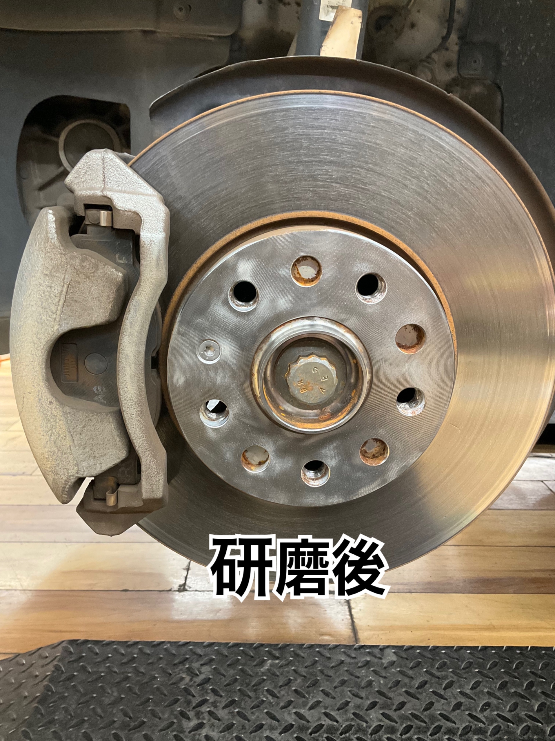 ホイールとぴったりはまる部分なのでタイヤを外した際にお客様に錆の状態をご確認いただきます。