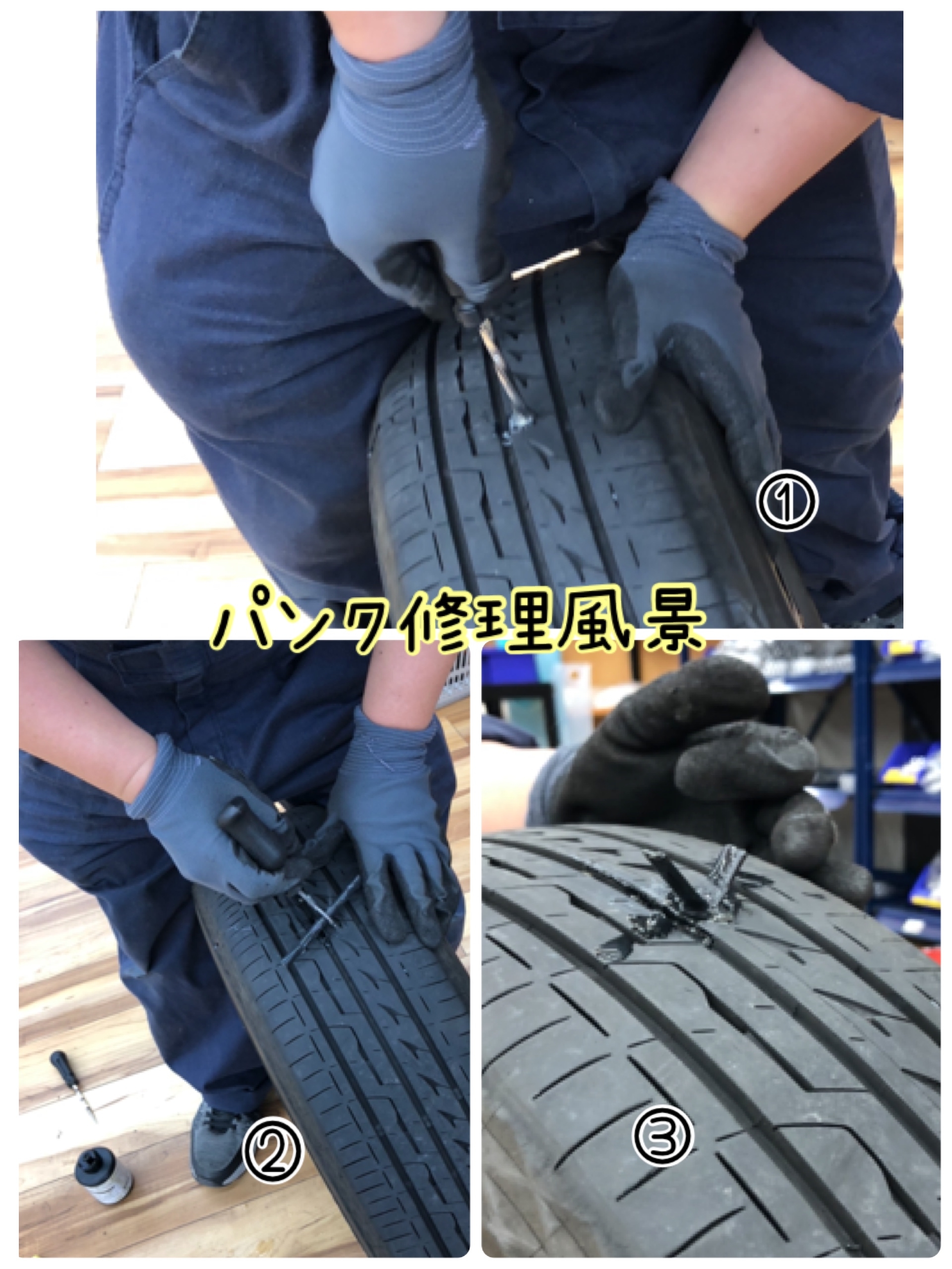今回はパンクにてご来店いただきましたタイヤのパンク修理の様子をお届け☆