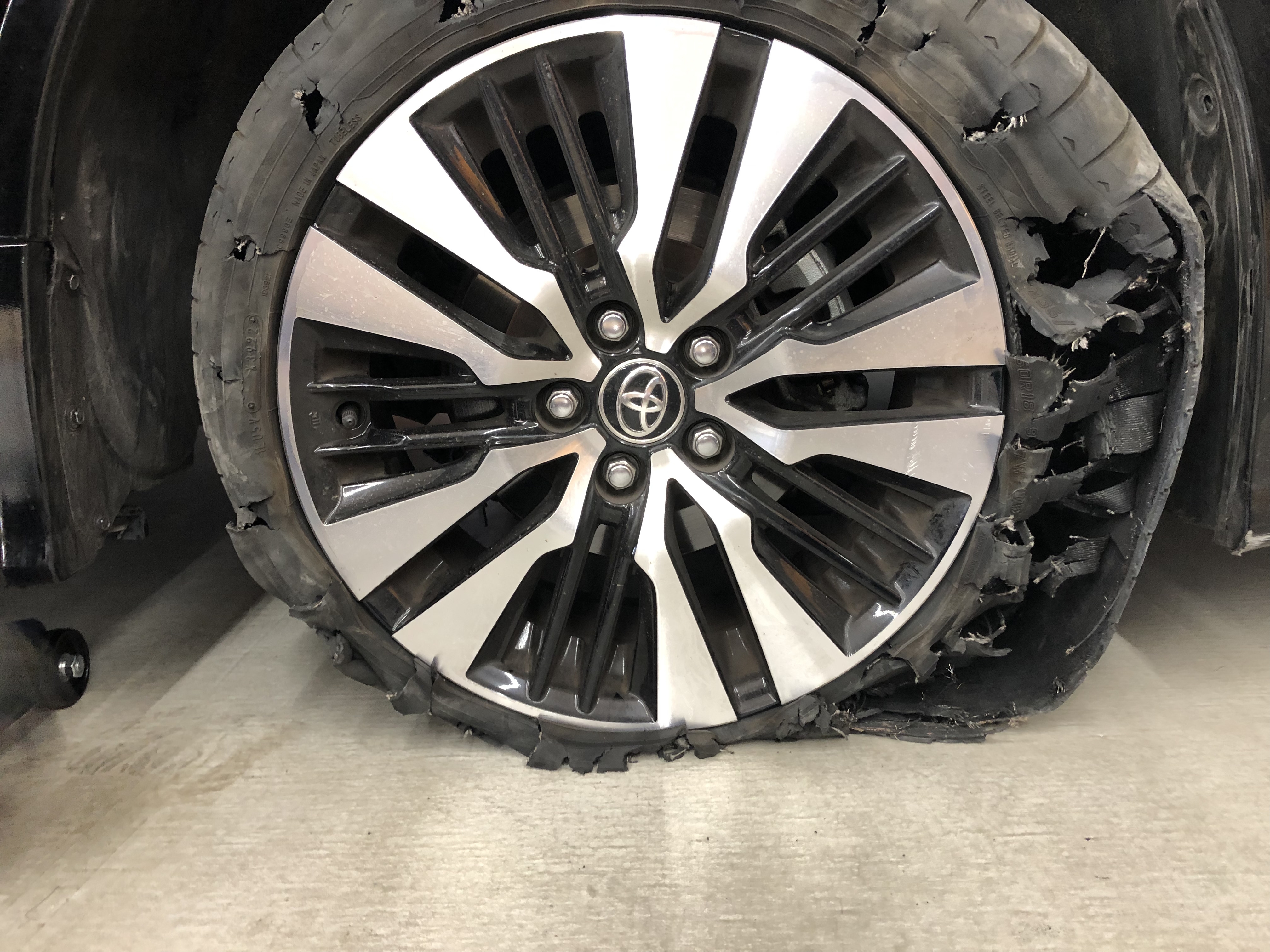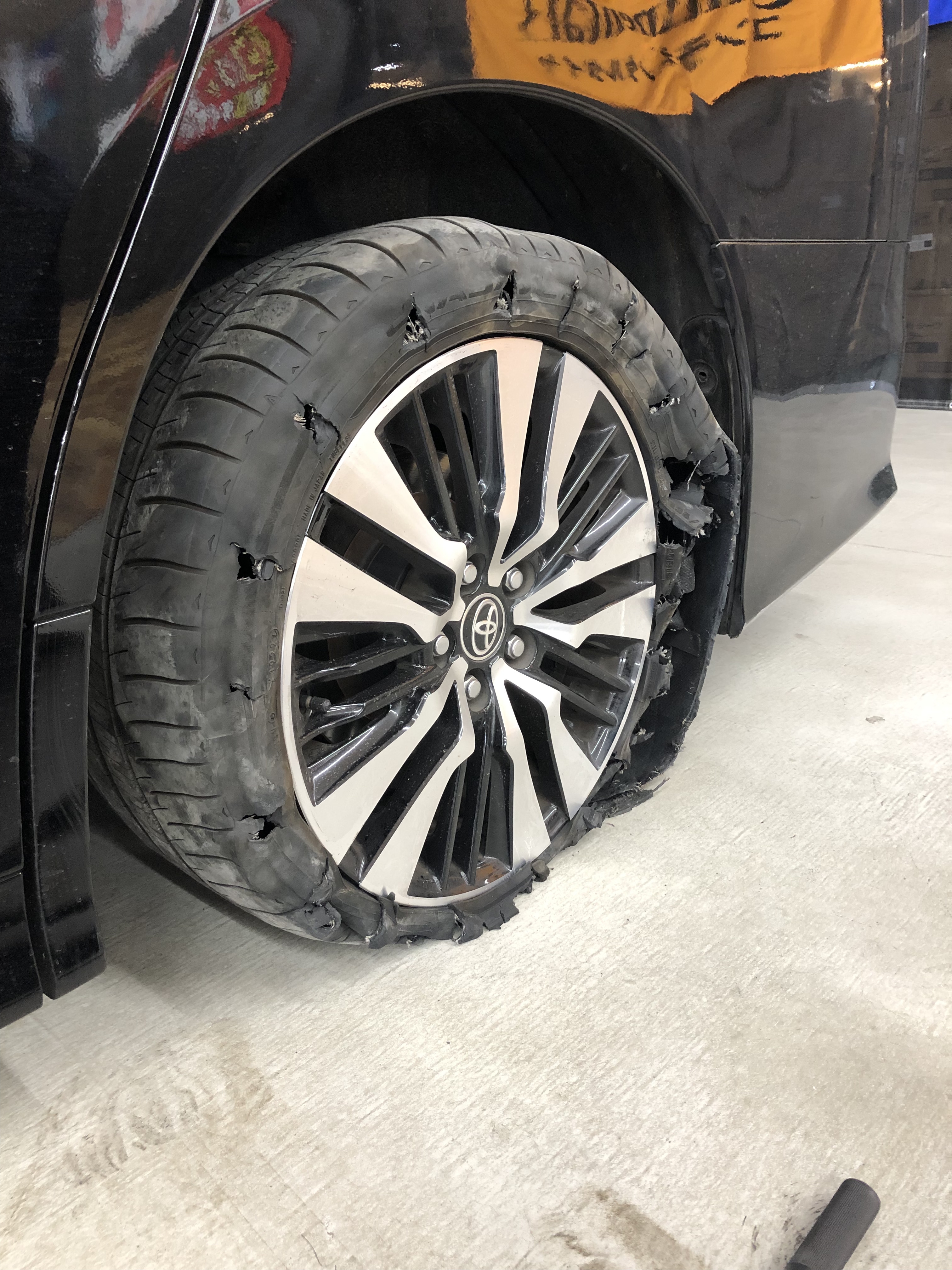 タイヤがバーストする原因は様々ですが...空気圧の低下、縁石に乗り上げたなどの衝撃、シーズン専用タイヤを装着していないなど...