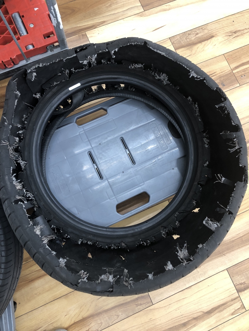 今回は、バーストしてレッカー車にてご来店いただきましたこちらのタイヤΣ(・ω・ノ)ノ!