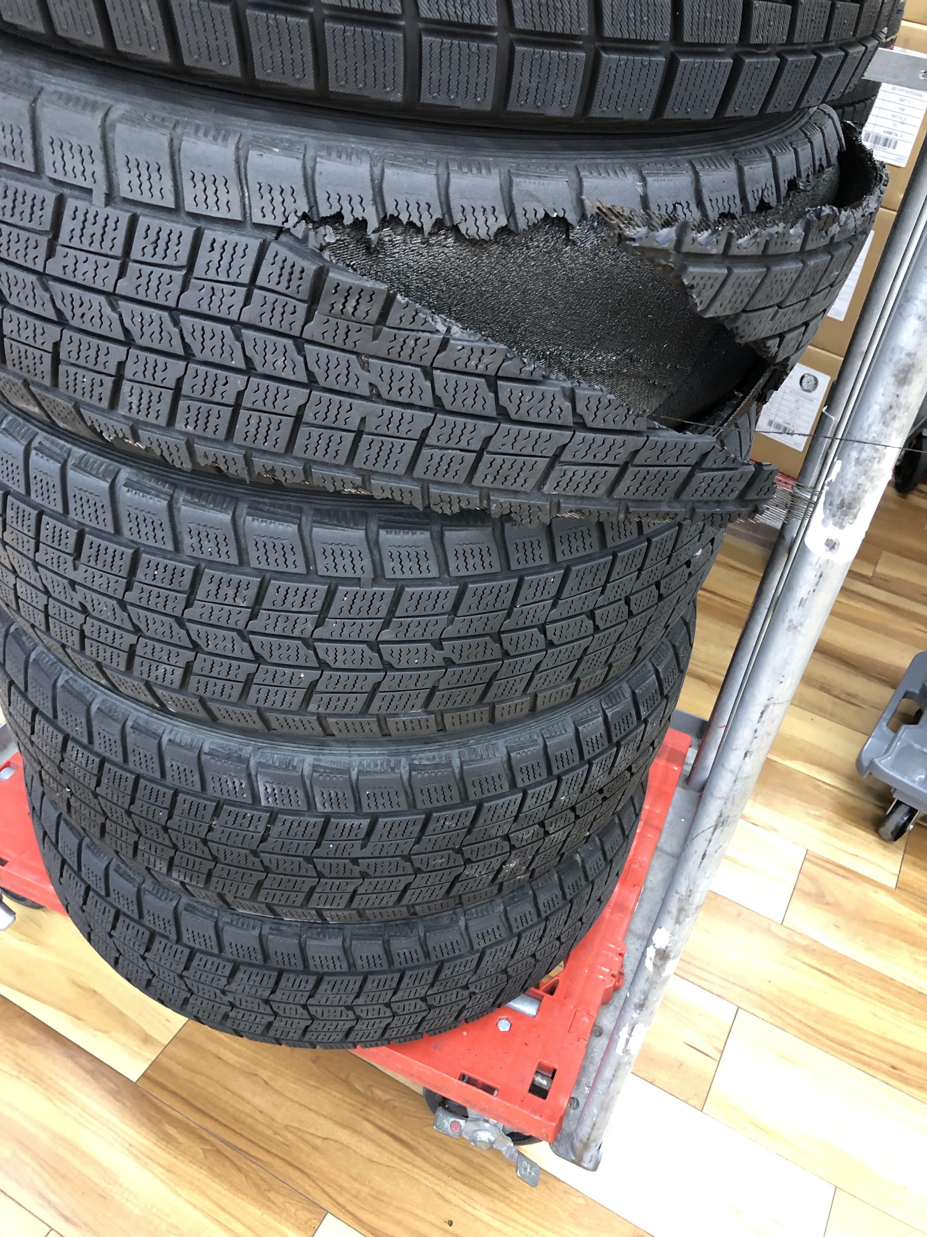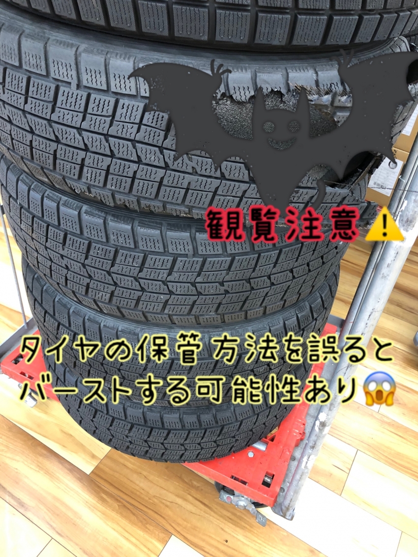 スタッドレスタイヤに付け替えようと保管していたタイヤを見たところ、なんと!バーストしてしまっていたとのことΣ( ̄ロ ̄lll)