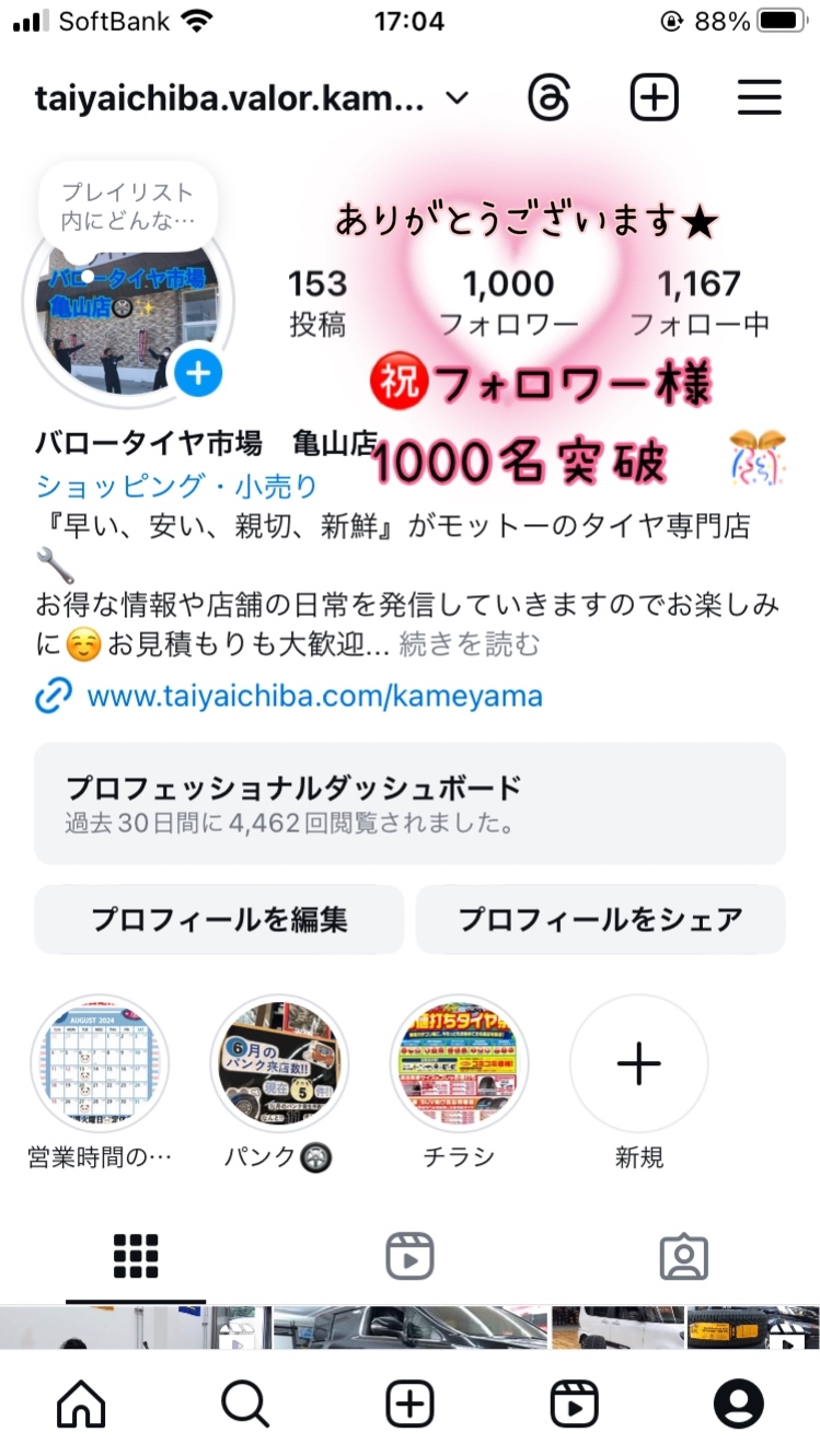 タイヤ市場亀山店ではインスタグラムの更新も頑張っています(`・ω・´)