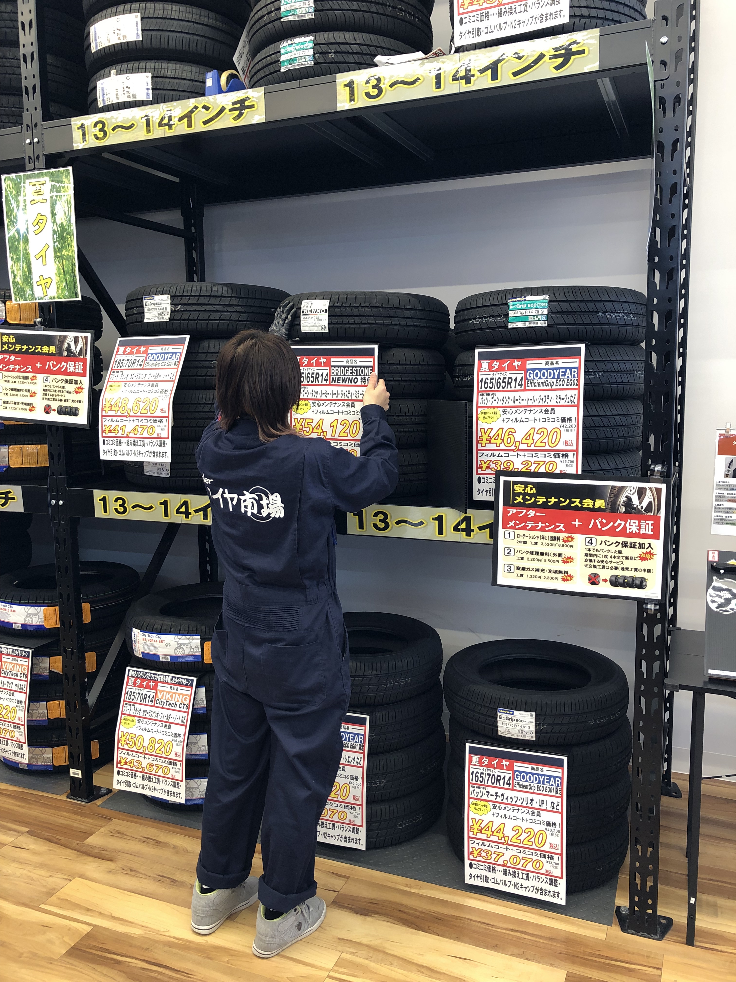 店内のオールシーズンタイヤと夏タイヤのPOPを大きく見やすいものにチェンジ★