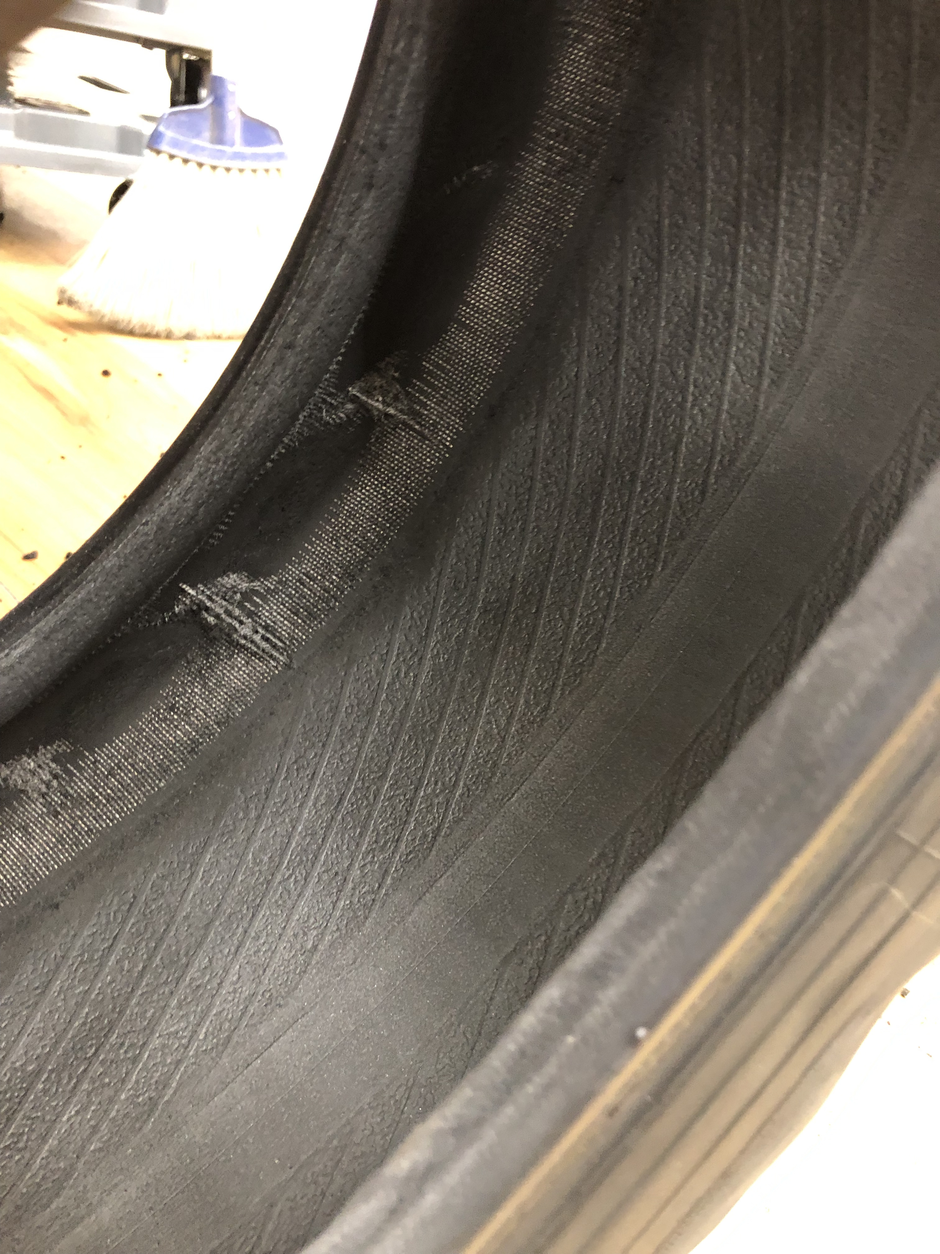 タイヤが波打って今にもバーストしてしまいそうで、大変危険な状態ですΣ(・ω・ノ)ノ!