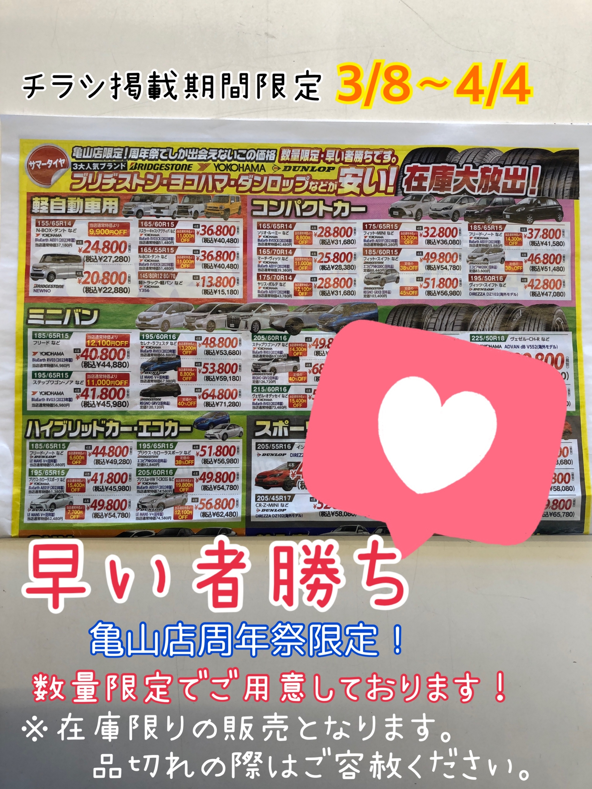 チラシ掲載期間3/8~4/4まで、亀山店限定!!