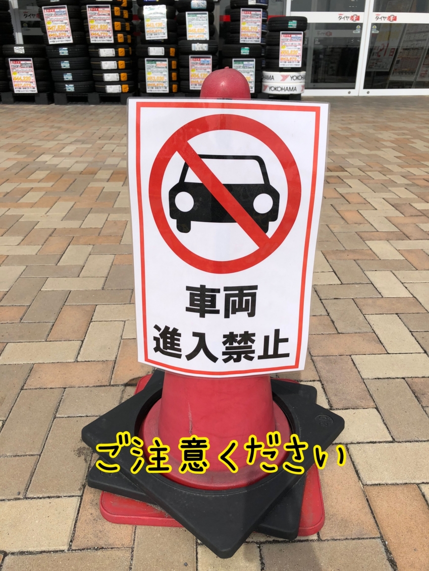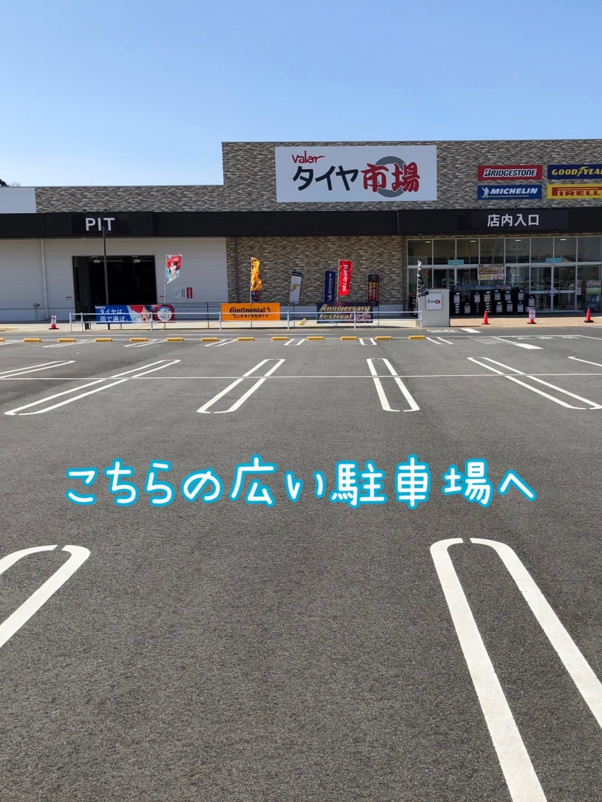 空気圧点検や、メンテナンスご利用のお客様も広い駐車場のほうに停めていただいてからのご来店をお願いしております(´ω`*)