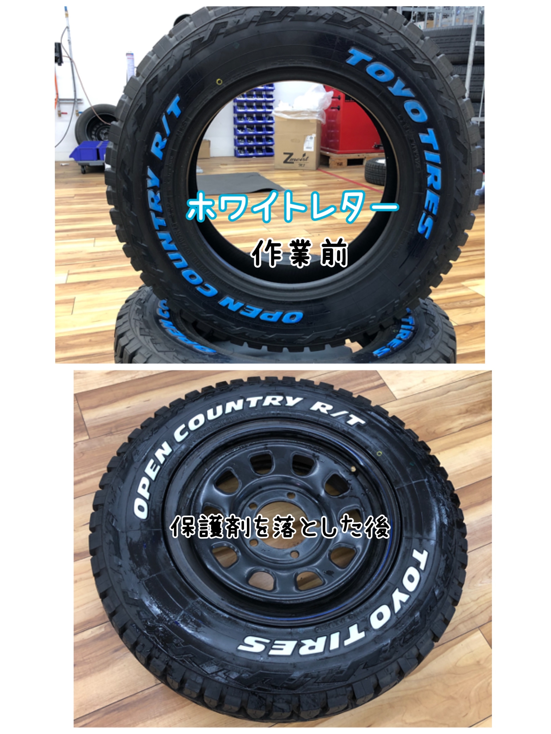 配送中の汚れや傷を防止するためホワイトレターの上から青い保護剤でコーティングしているんです(`・ω・´)