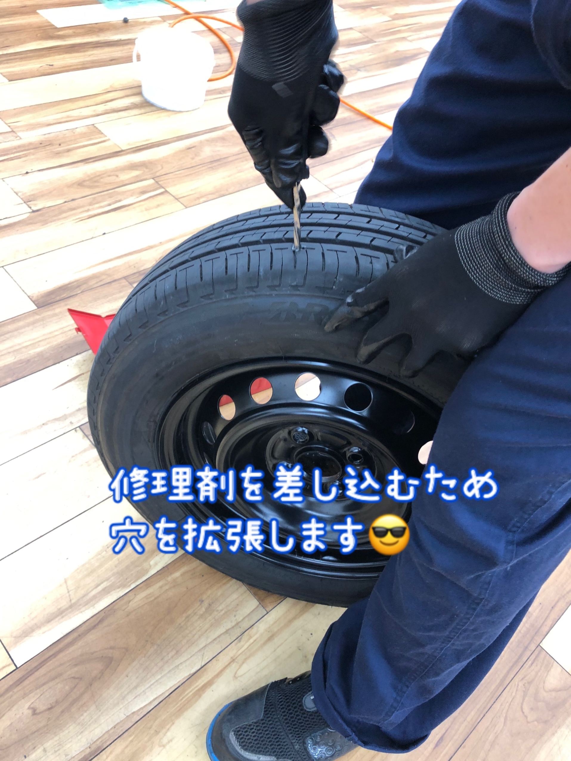 その後、素早く修理材を差し込み、適切に穴が塞がっているか空気漏れがないか確認して作業は完了です(`・ω・´)