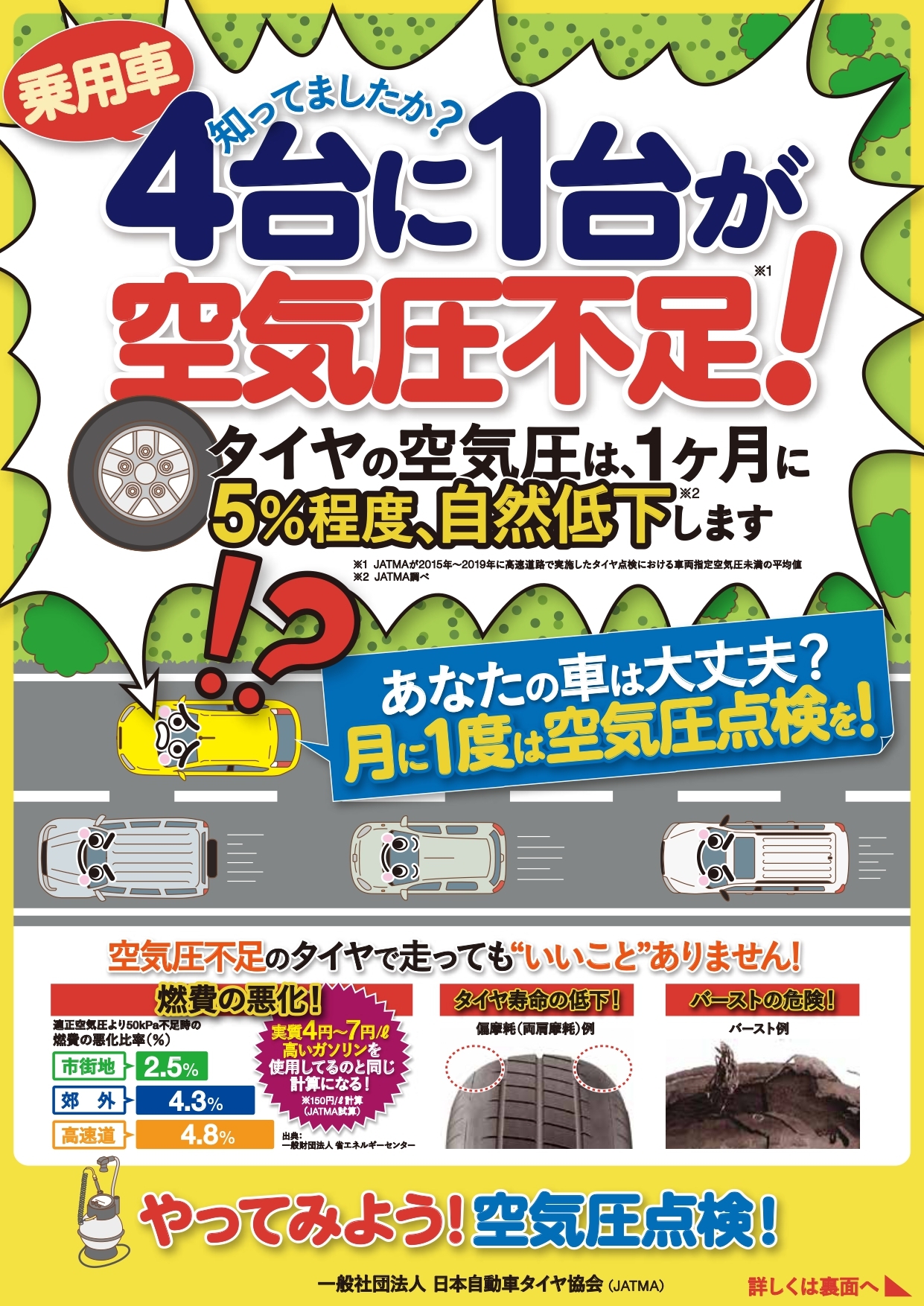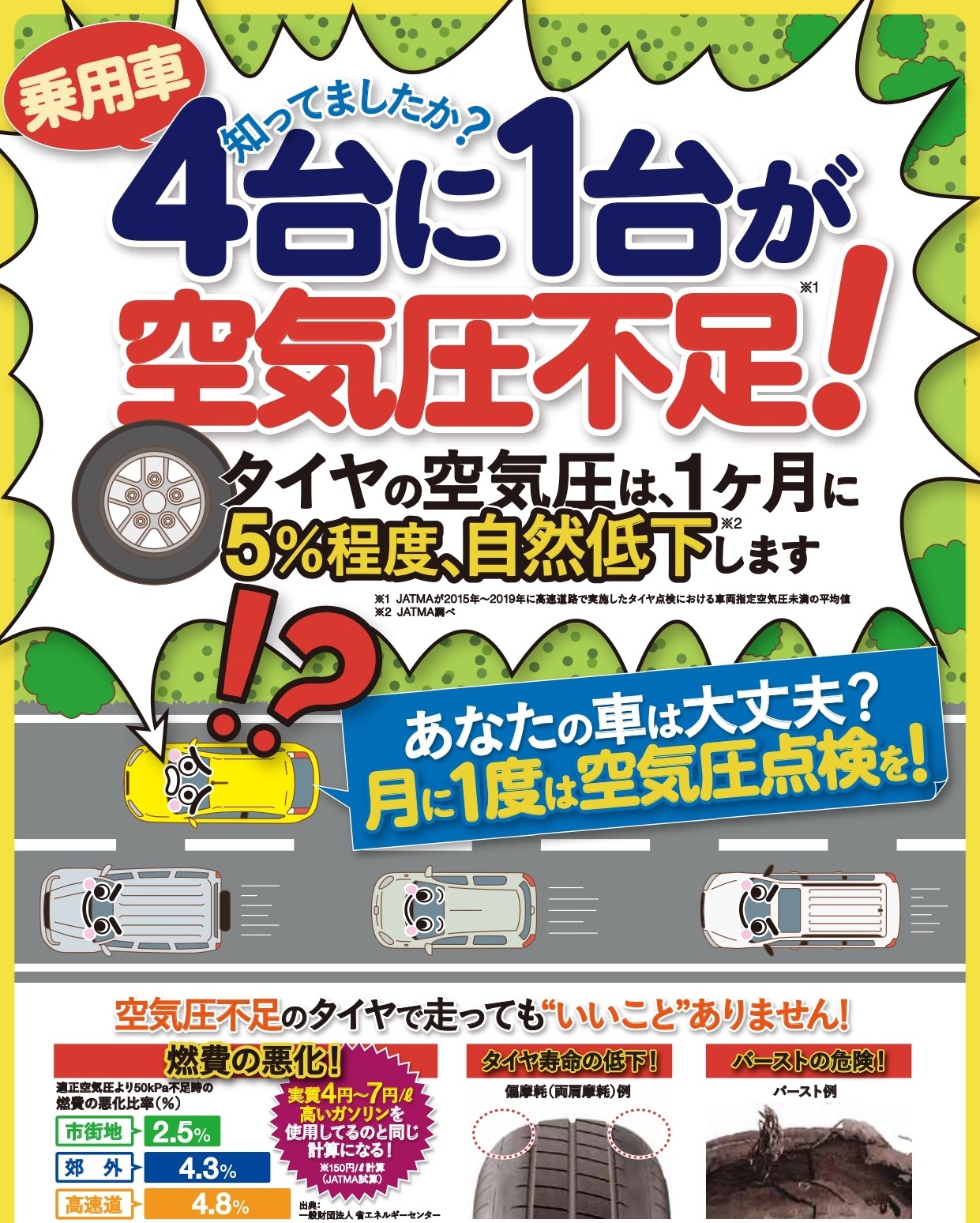 レジャーや帰省などで遠出をされる際は、お出かけ前にタイヤの空気圧チェックをお忘れなく(^_-)-☆