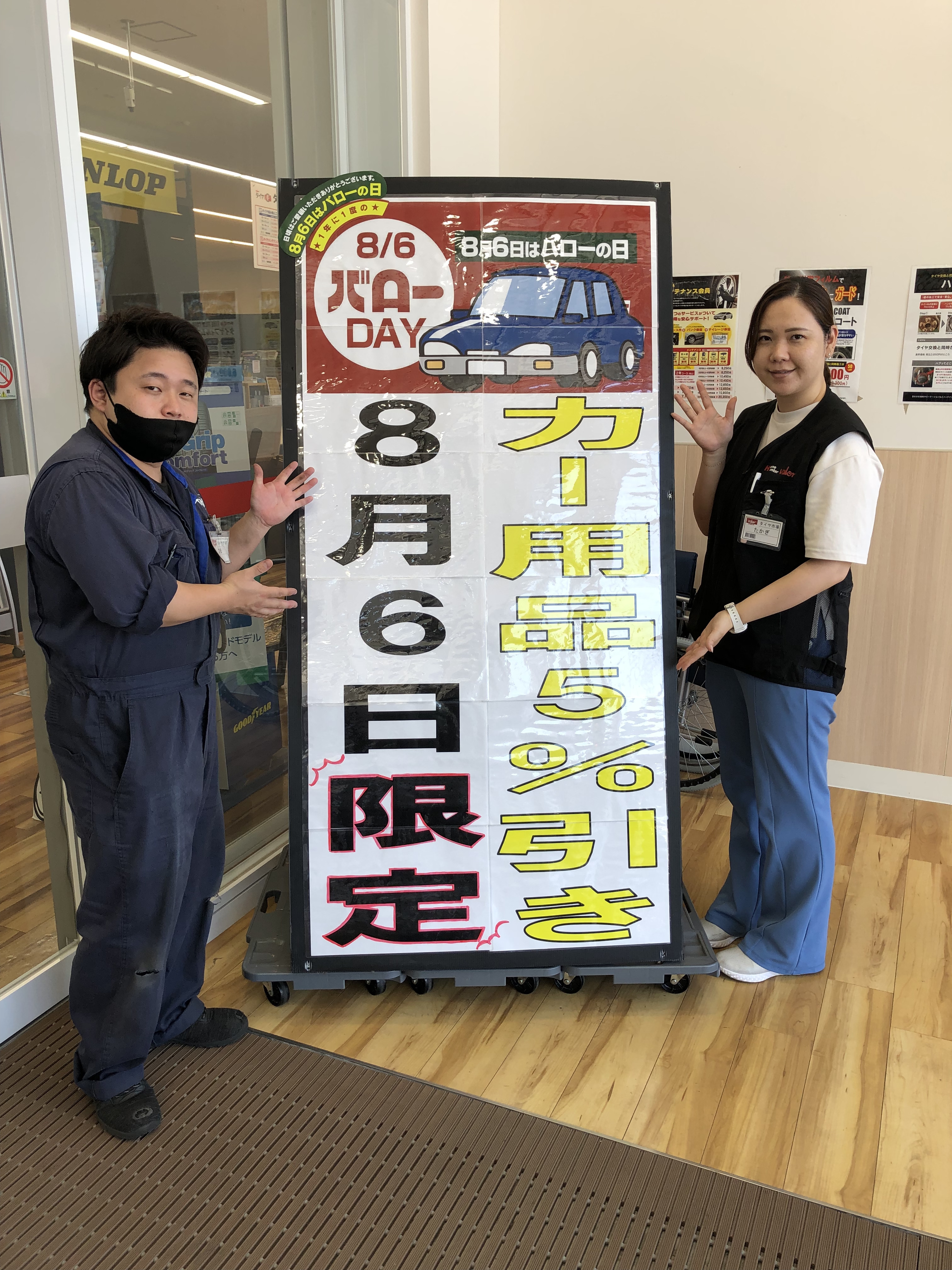 そしてなんと!!8月6日バローの日限定!!カー用品を5%OFFでお得にお買い求めいただけます(∩´∀`)∩是非この機会にお越しくださいませ。