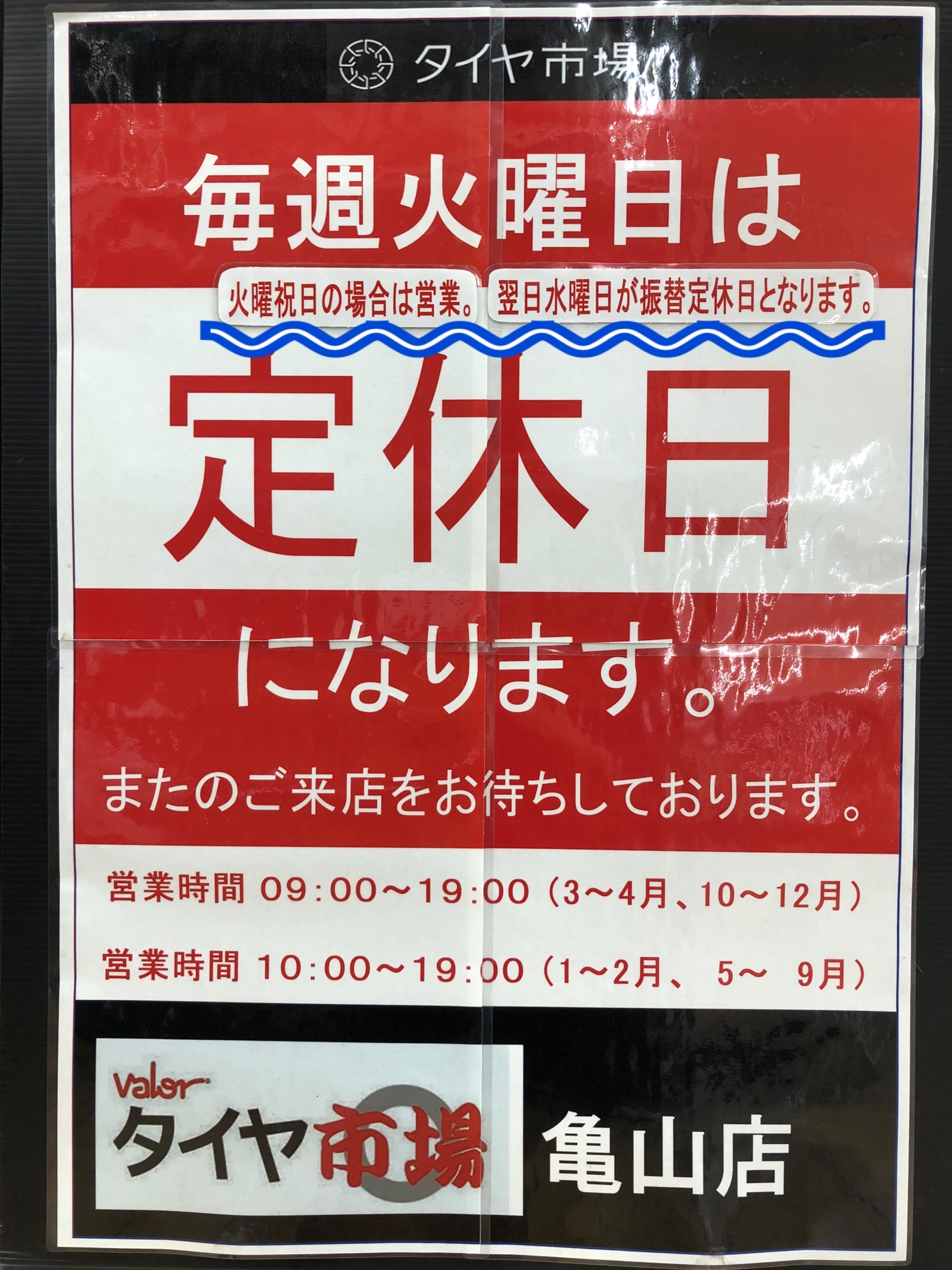 AM10:00~PM7:00 (ピット作業受付:AM10:00~PM6:00)※定休日:毎週火曜日