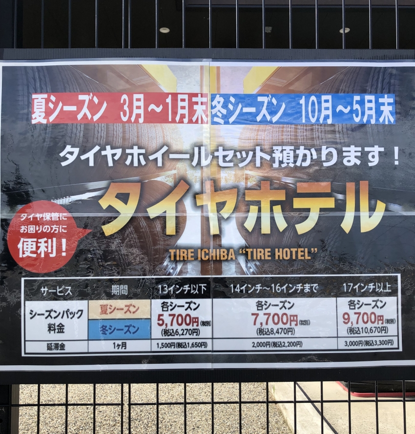 タイヤ市場ではシーズンオフのタイヤホイールセットをお預かりさせて頂く【タイヤホテル】がございます。